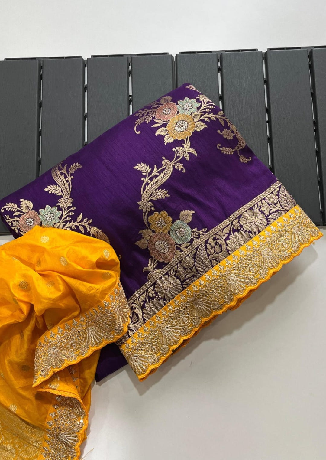कपड़ा: फूल मीना बुनाई के साथ बनारसी पट्टू साड़ी