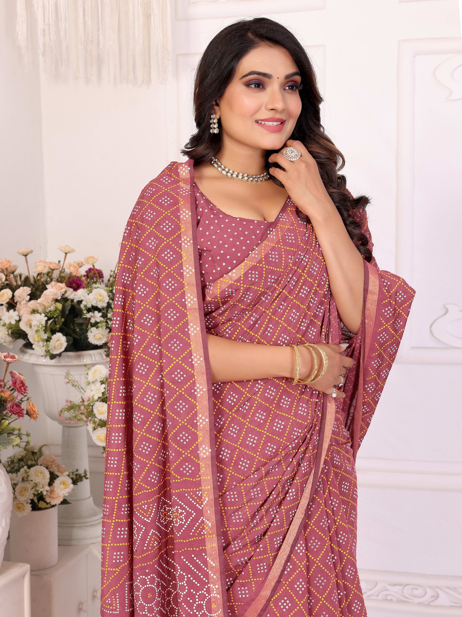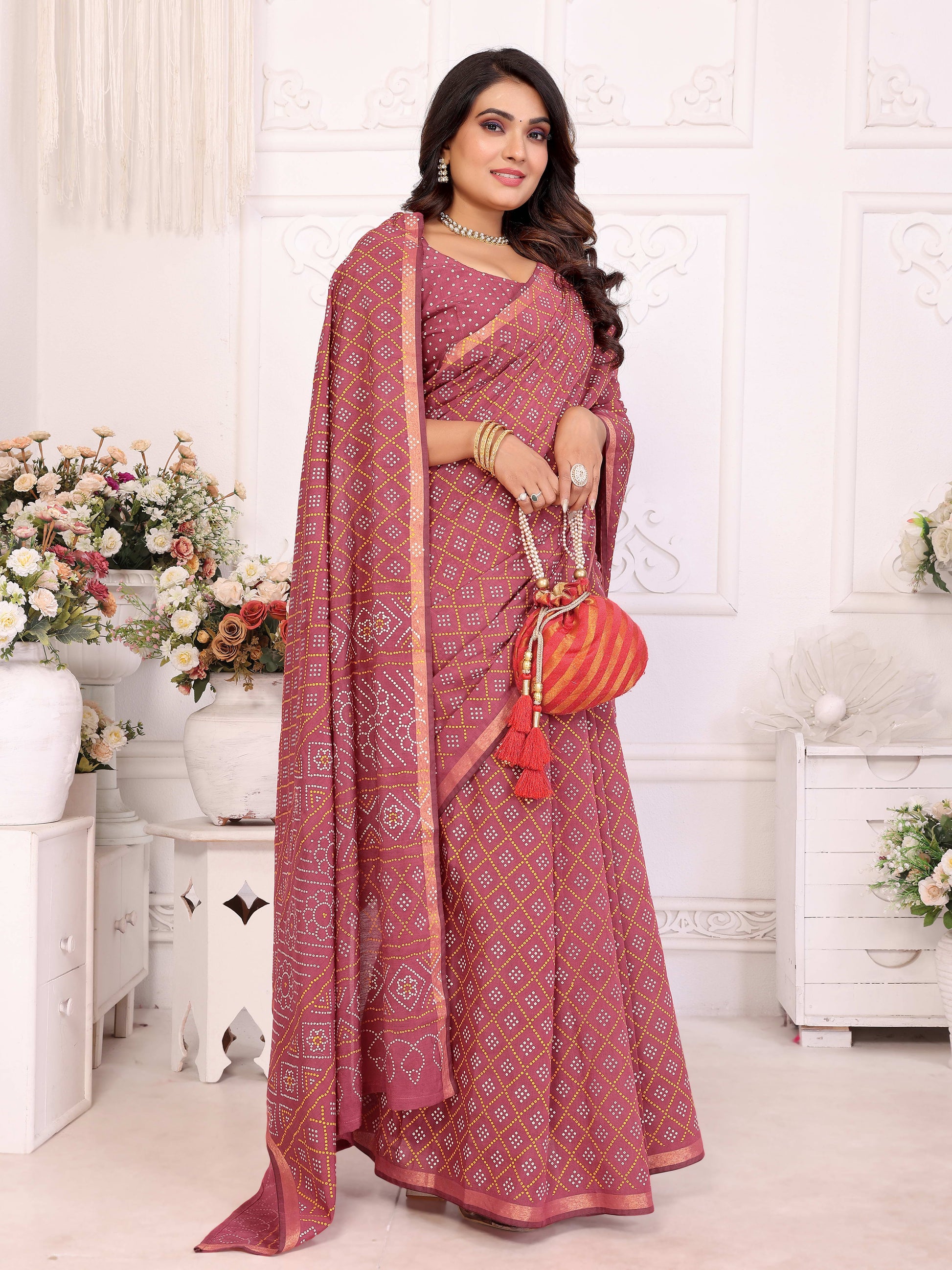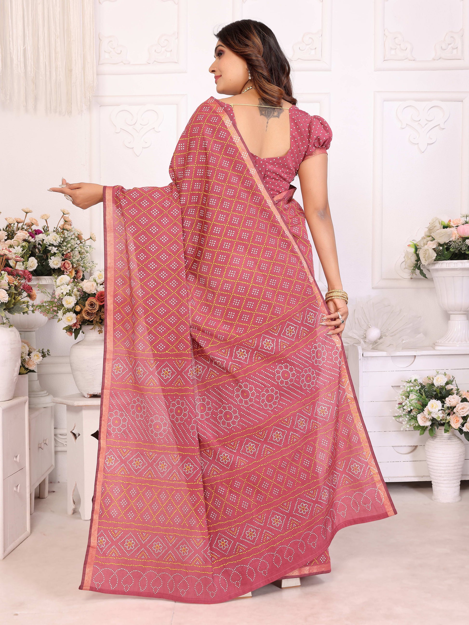 मैरून अंबा शुद्ध पटोला और बंधेज पैटर्न नरम सूती हल्के वजन की साड़ी