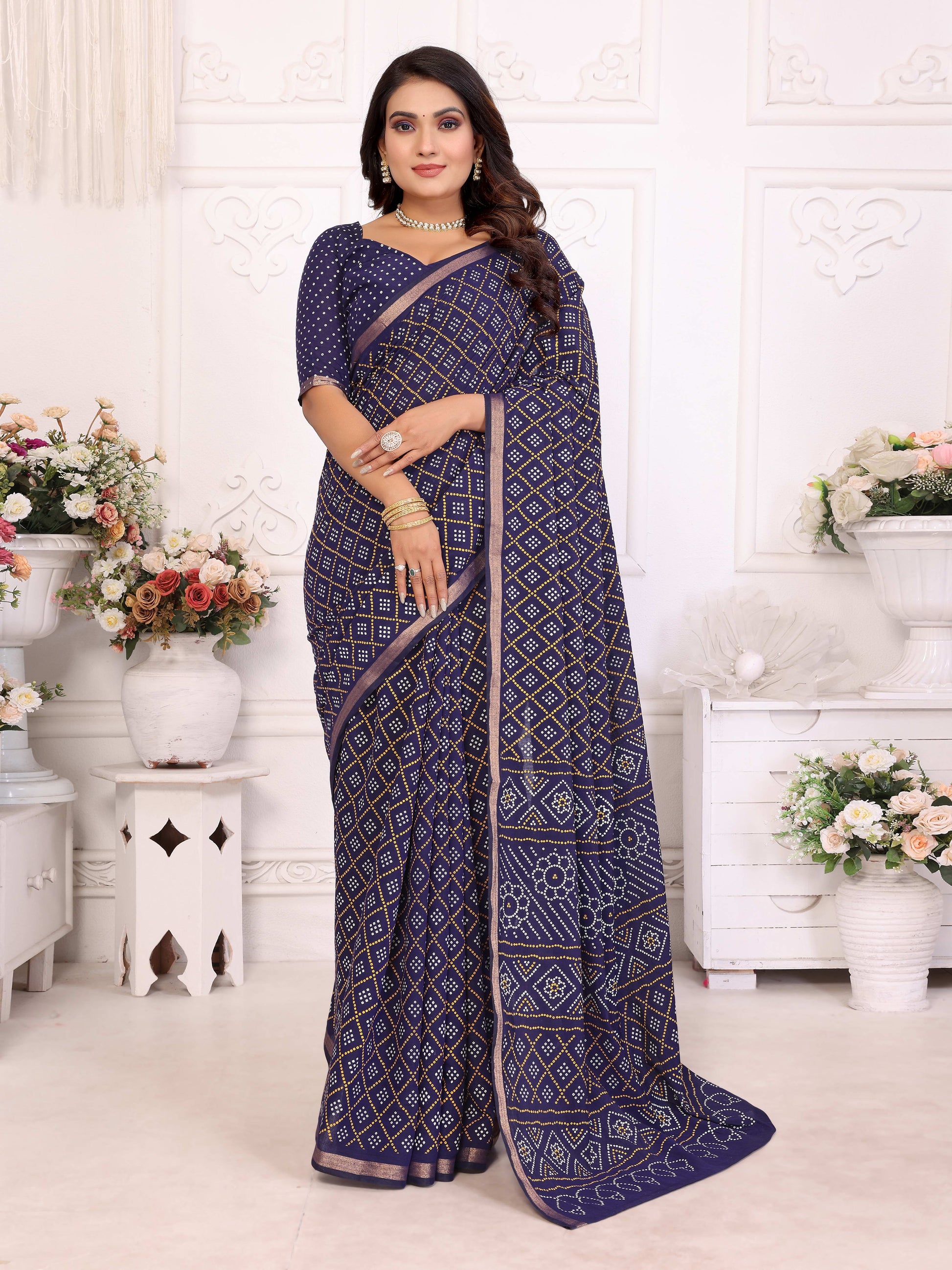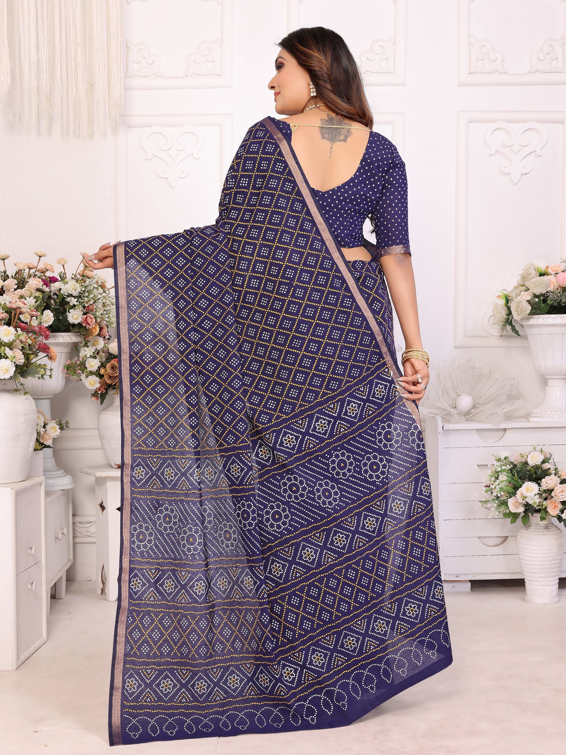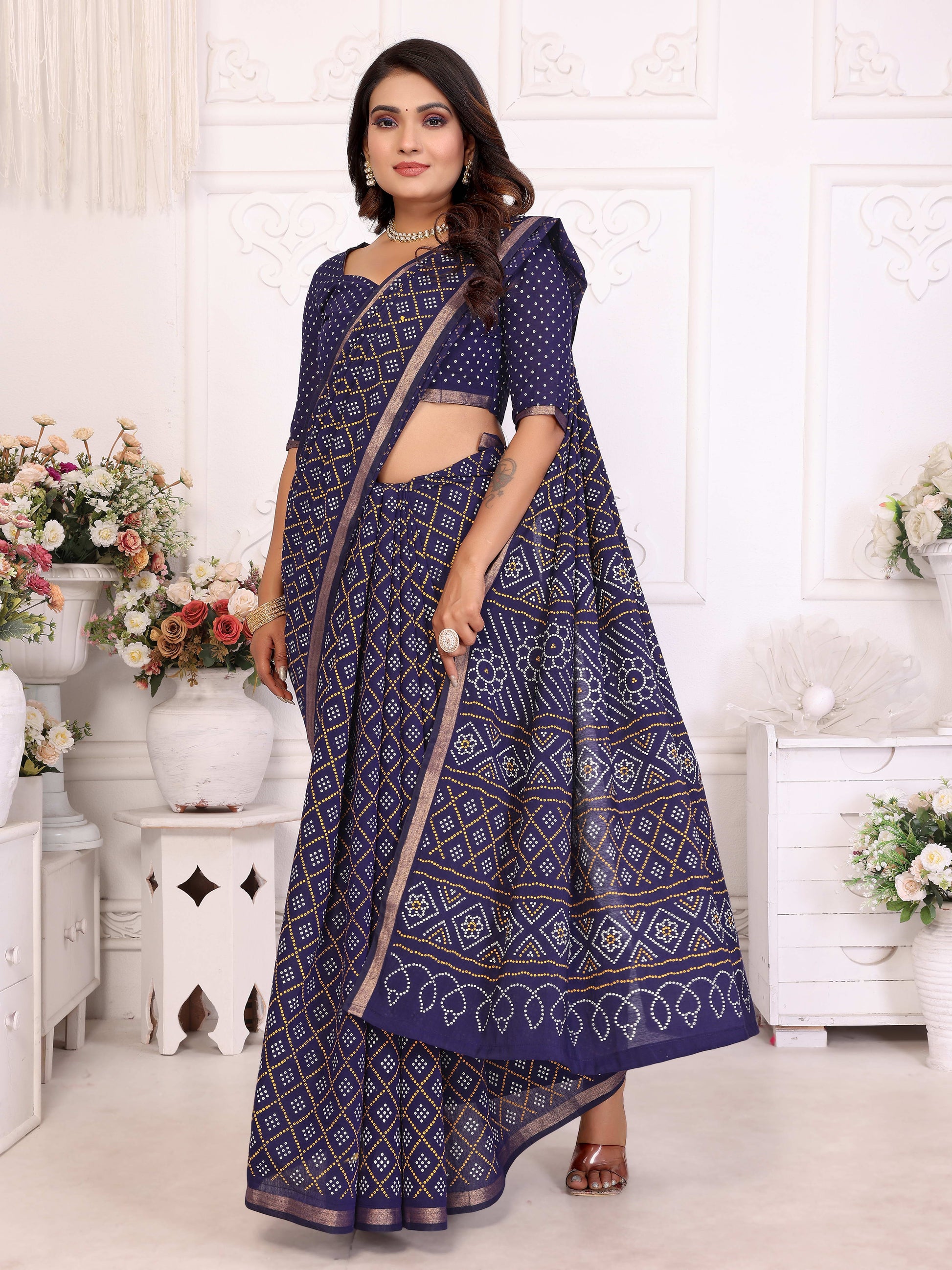 नेवी ब्लू अम्बा प्योर पटोला और बंधेज पैटर्न सॉफ्ट कॉटन हल्के वजन की साड़ी