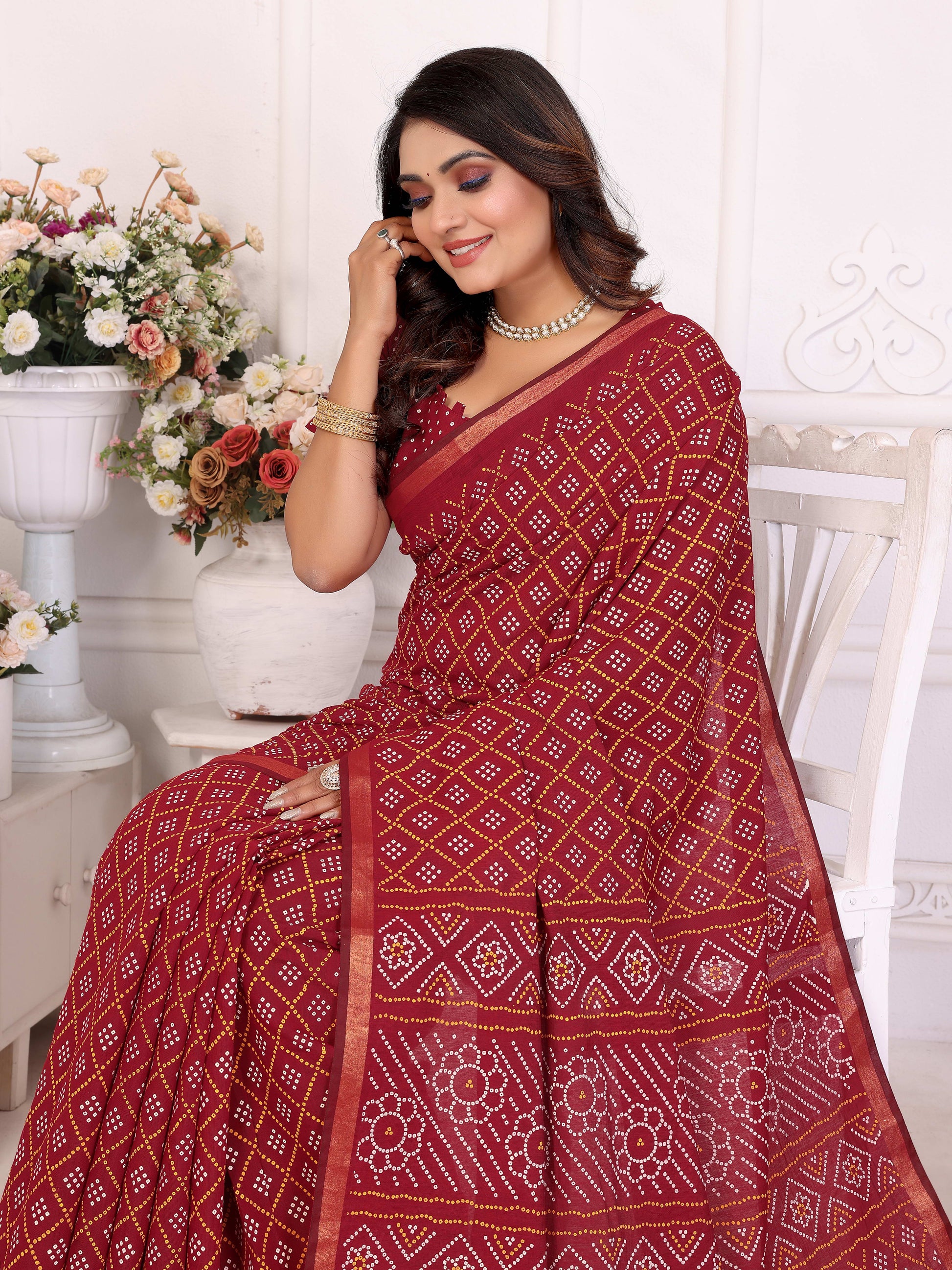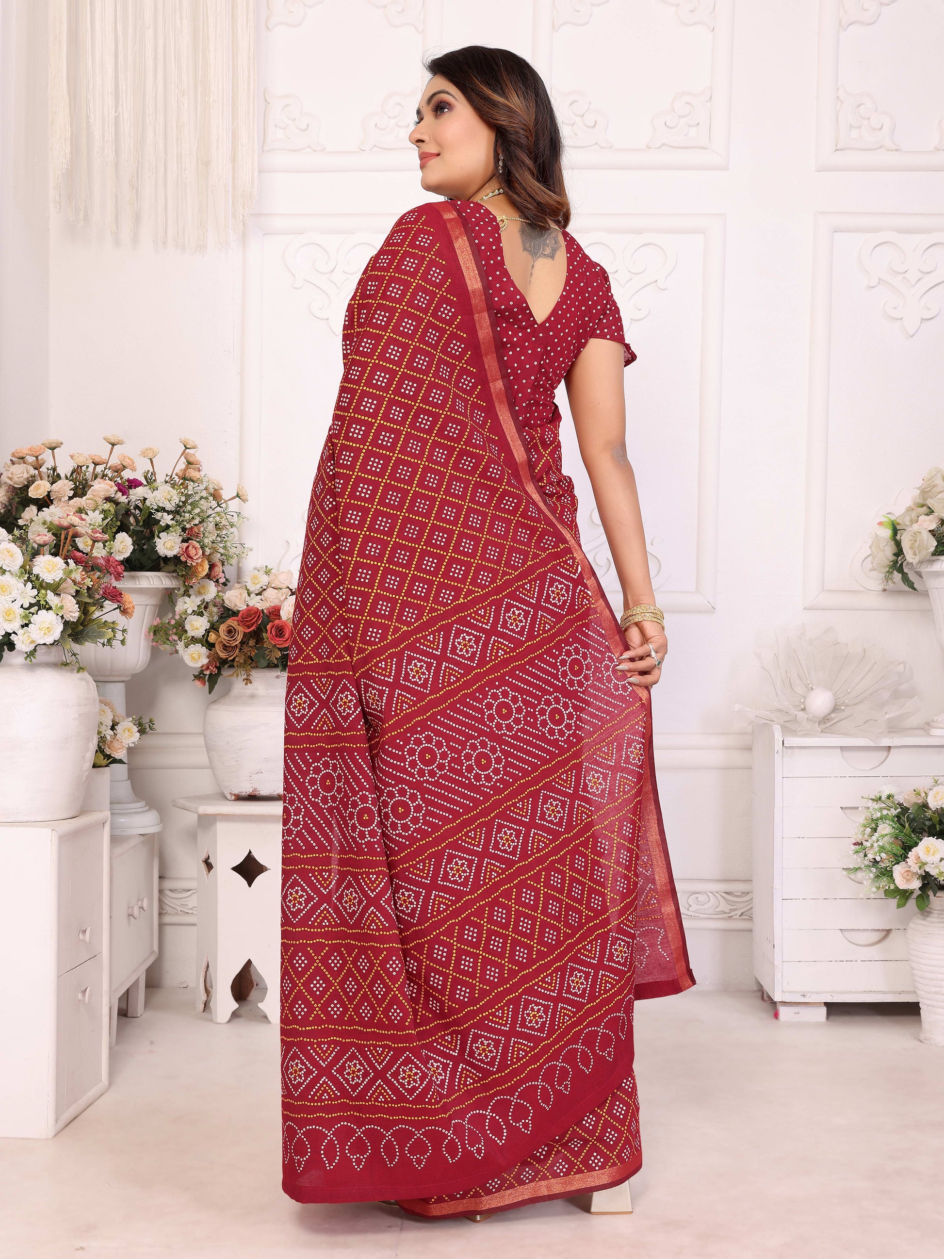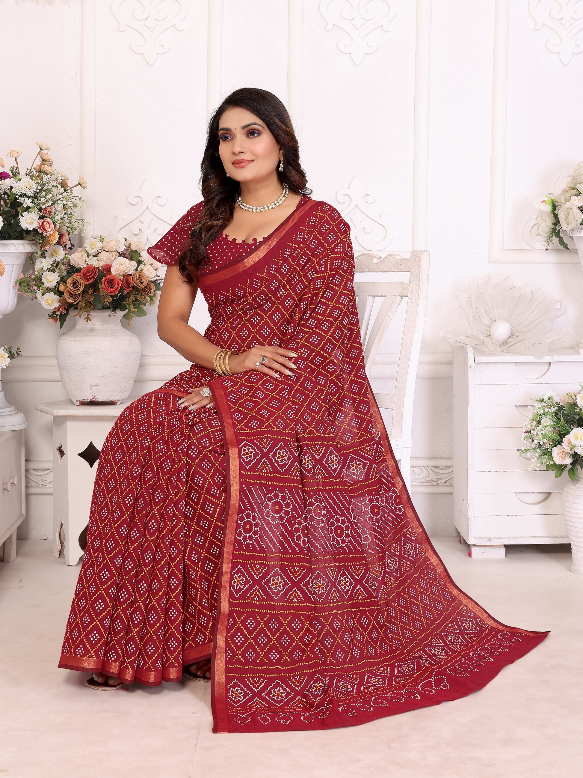 लाल अंबा शुद्ध पटोला और बंधेज पैटर्न नरम सूती हल्के वजन की साड़ी