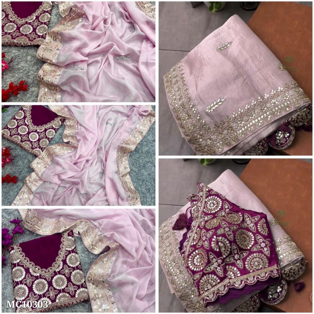 *⭕ ब्लाउज:* गोटापट्टी कढ़ाई के साथ बैंगलोरी साटन *(अनस्टिच्ड)*