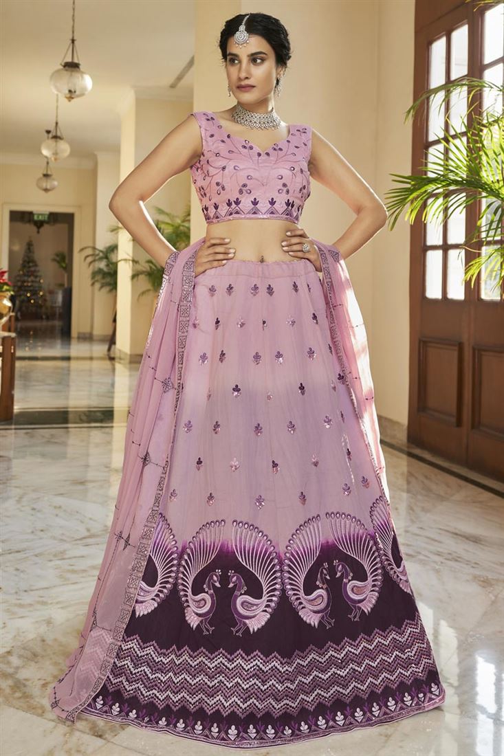 आर्ट सिल्क फैब्रिक संगीत वियर गुलाबी रंग का अद्भुत लहंगा