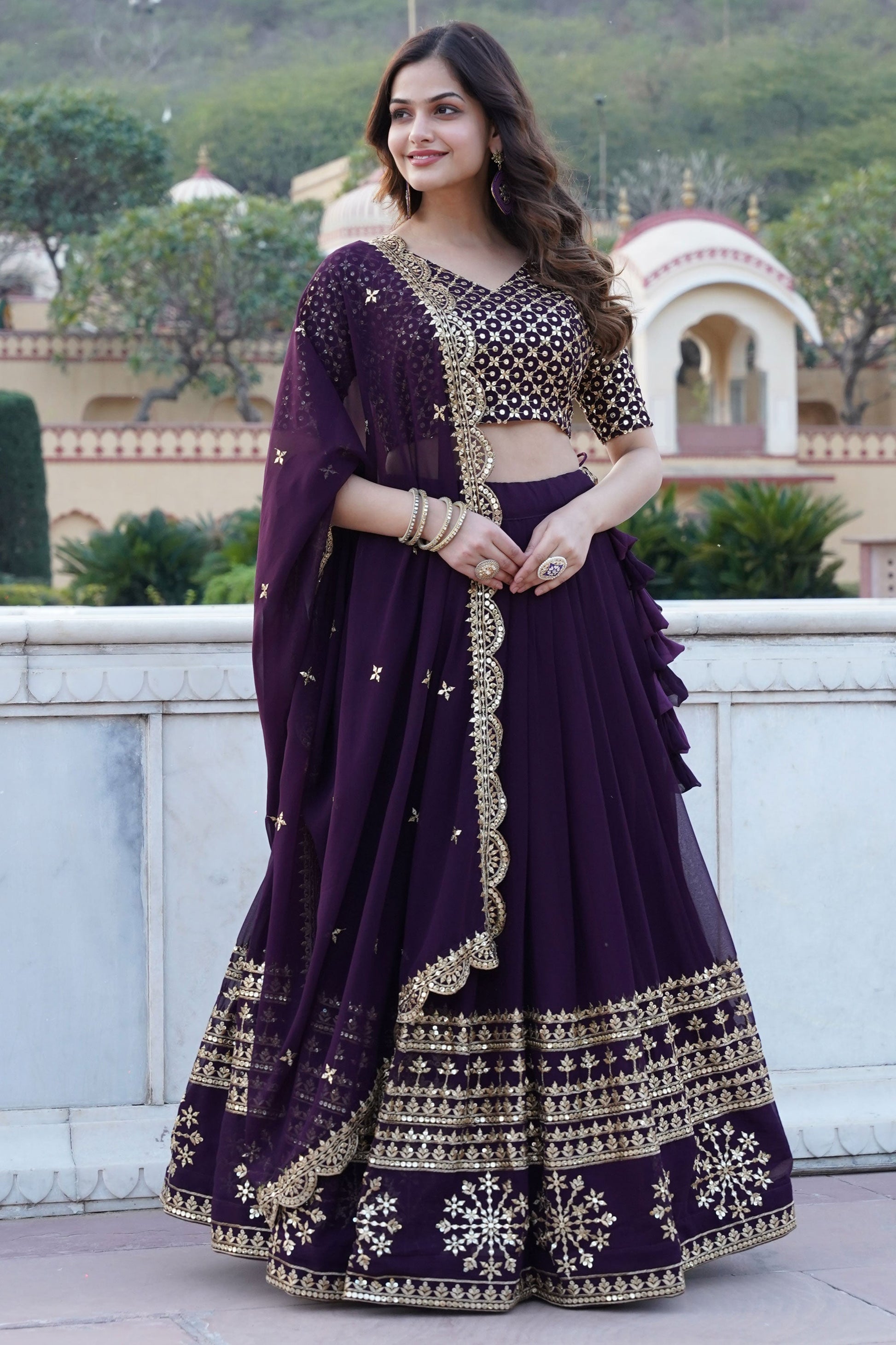 आकर्षक फंक्शन वियर पर्पल कलर सेक्विन वर्क जॉर्जेट लहंगा चोली
