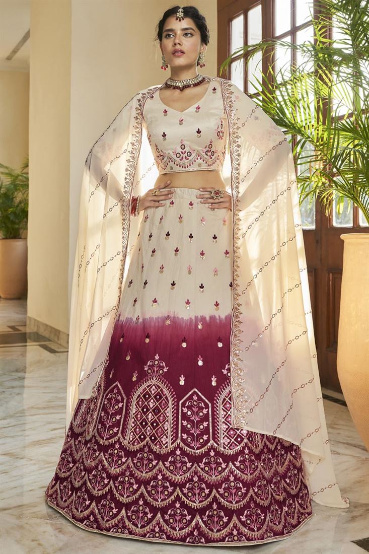 बेज रंग का संगीत वियर आर्ट सिल्क फैब्रिक करिश्माई लहंगा