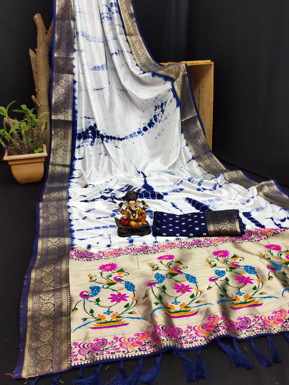 नीले रंग की खूबसूरत ओरिजिनल सिबोरी सॉफ्ट डोला सिल्क साड़ी के साथ