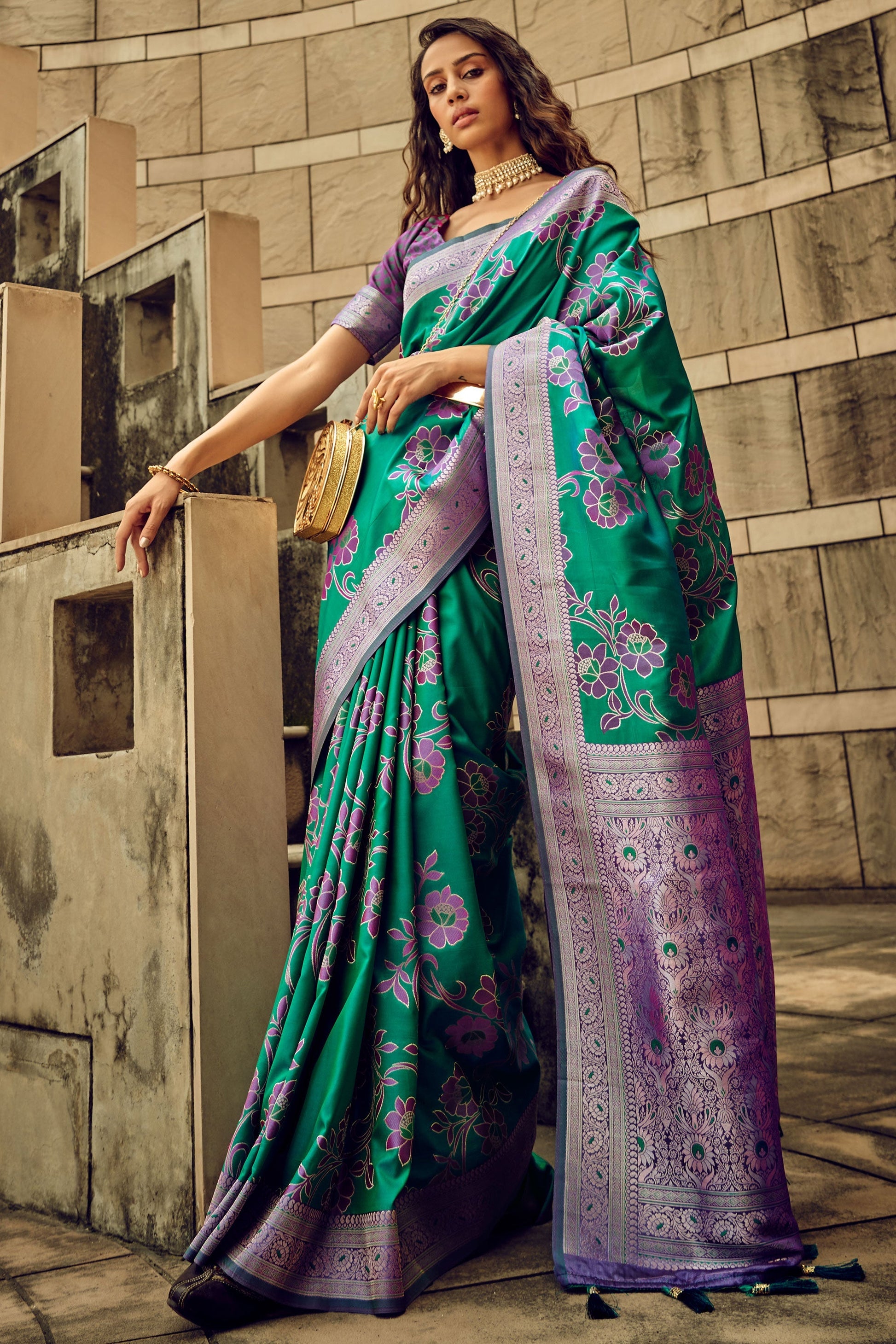 टेक्स्ट ब्लॉक ब्रासो फैब्रिक ग्रीन कलर की फंक्शन वियर में सुंदर लुक वाली साड़ी