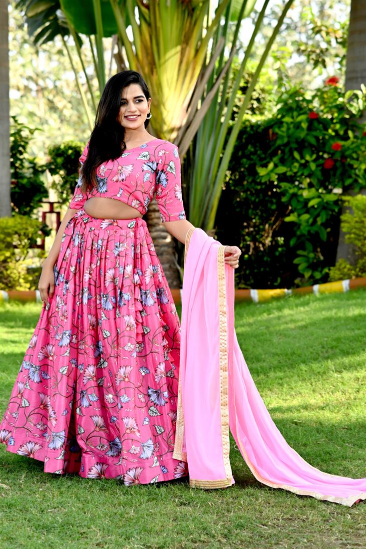 चिनॉन फैब्रिक पिंक कलर सुपीरियर प्रिंटेड लहंगा