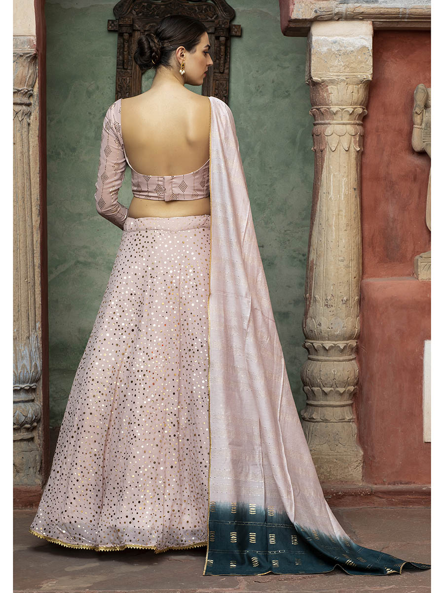 डस्टी पिंक जॉर्जेट कढ़ाई वाला डिजाइनर लहंगा