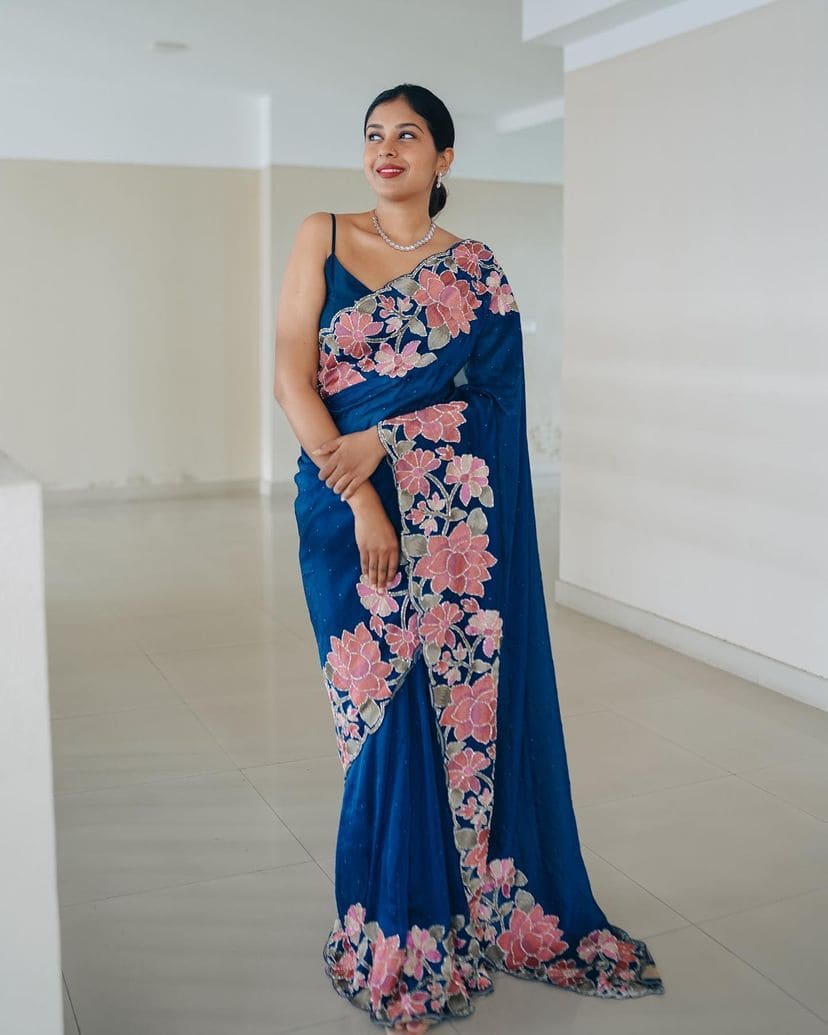 हर सिलाई में कलात्मकता: डिज़ाइनर सीक्वेंस और धागों से सजी हमारी साड़ी में जटिल सी-पल्लू का काम है जो आपके पहनावे में ग्लैमर का स्पर्श जोड़ता है। डिज़ाइनर कटवर्क बॉर्डर और नाज़ुक मोती का काम इसके आकर्षण को और बढ़ाता है, जिससे यह एक कालातीत टुकड़ा बन जाता है जो लालित्य को दर्शाता है।