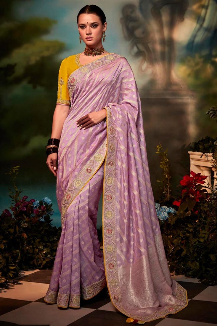 यूजेनिया बेलौसोवा आर्ट सिल्क फ़ैब्रिक सुपीरियर गुलाबी रंग की साड़ी