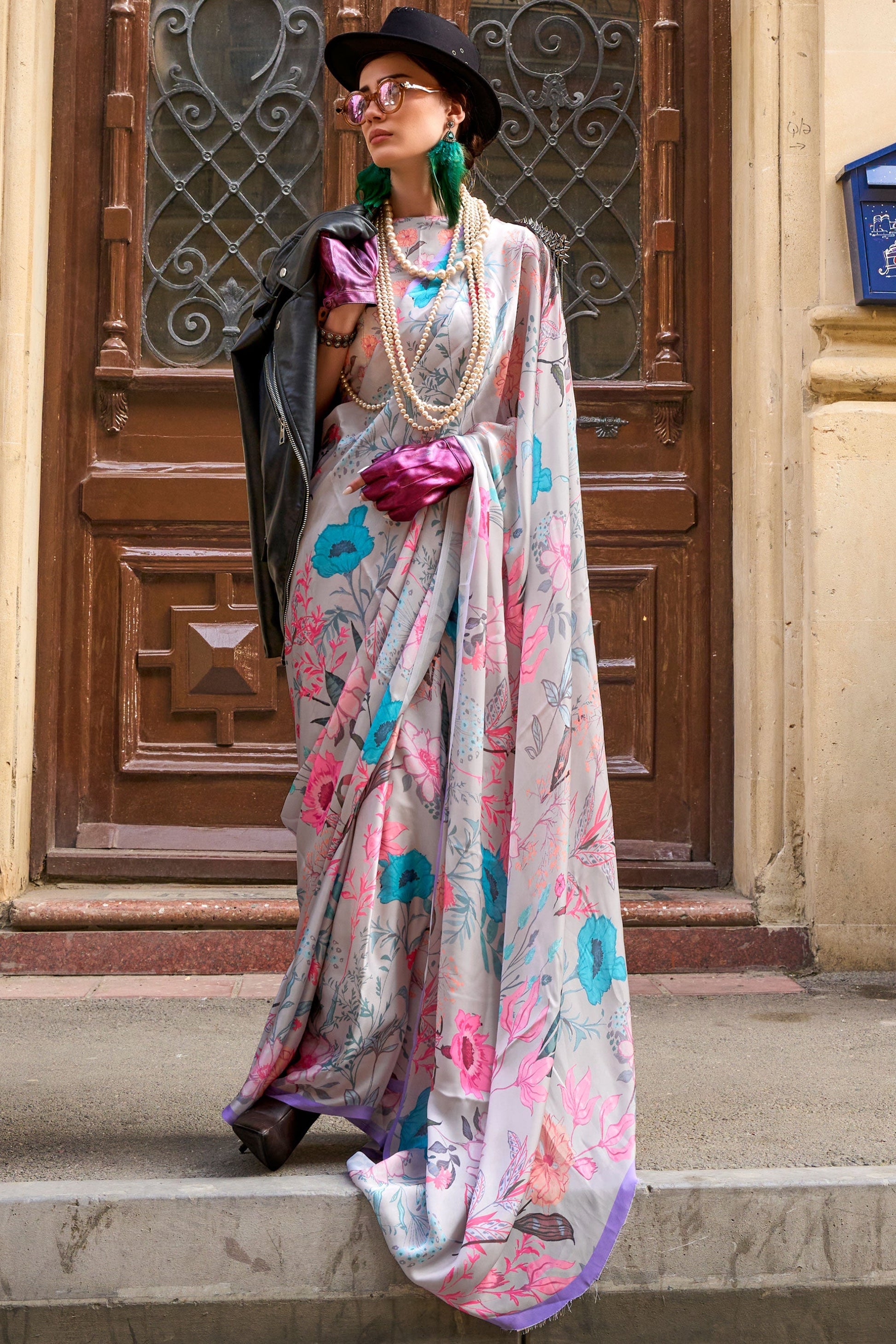 उत्कृष्ट कला रेशम कपड़े मुद्रित काम के साथ बेज रंग साड़ी