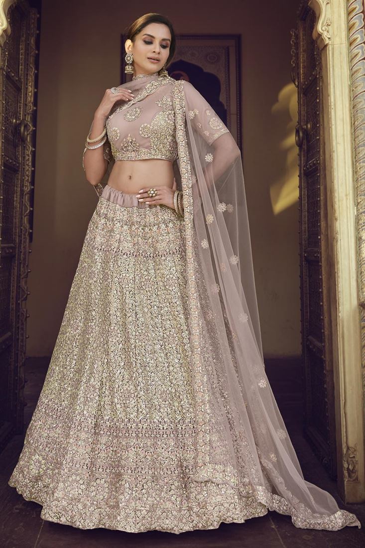 एक्सक्लूसिव नेट फैब्रिक रिसेप्शन वियर चीकू कलर सेक्विन वर्क लहंगा चोली