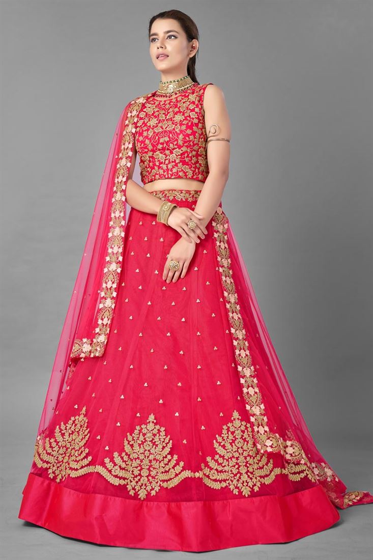 एक्सक्लूसिव नेट फैब्रिक वेडिंग वियर फैंसी वर्क लहंगा चोली
