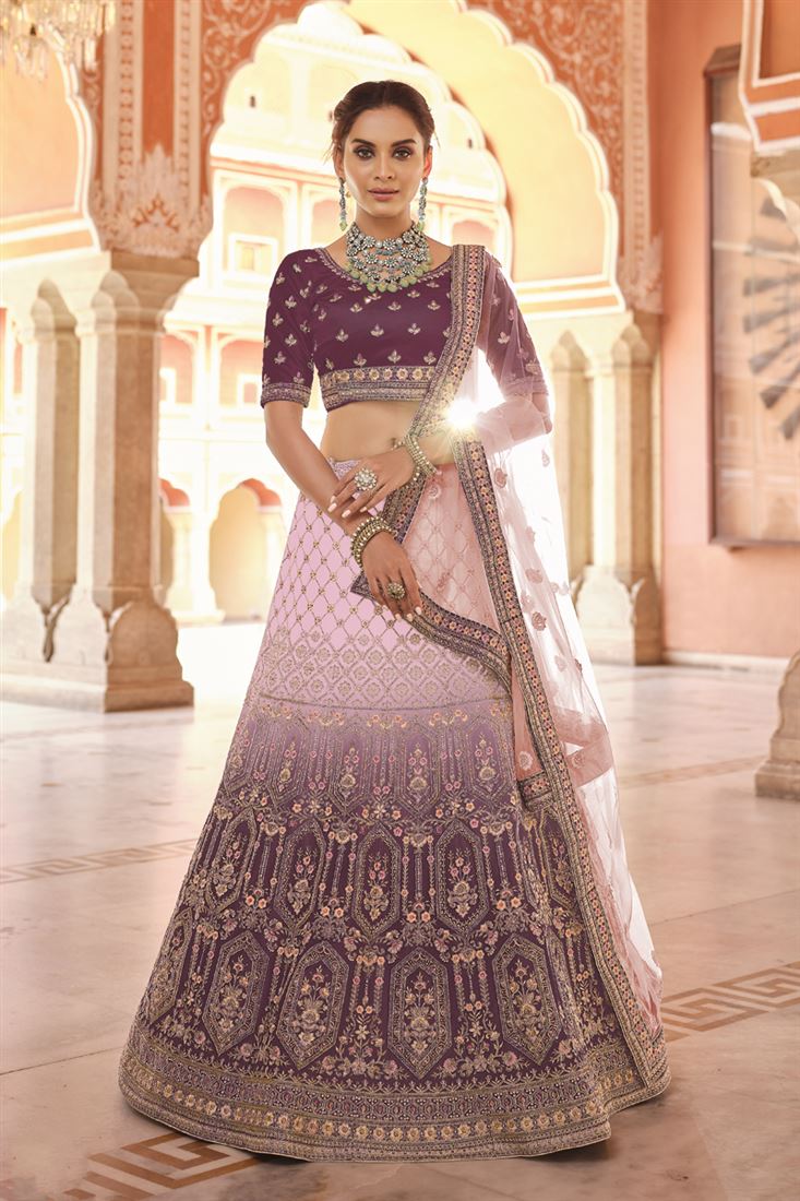 वाइन कलर में एक्सक्लूसिव वेलवेट आकर्षक कढ़ाई वाला रिसेप्शन वियर लहंगा चोली