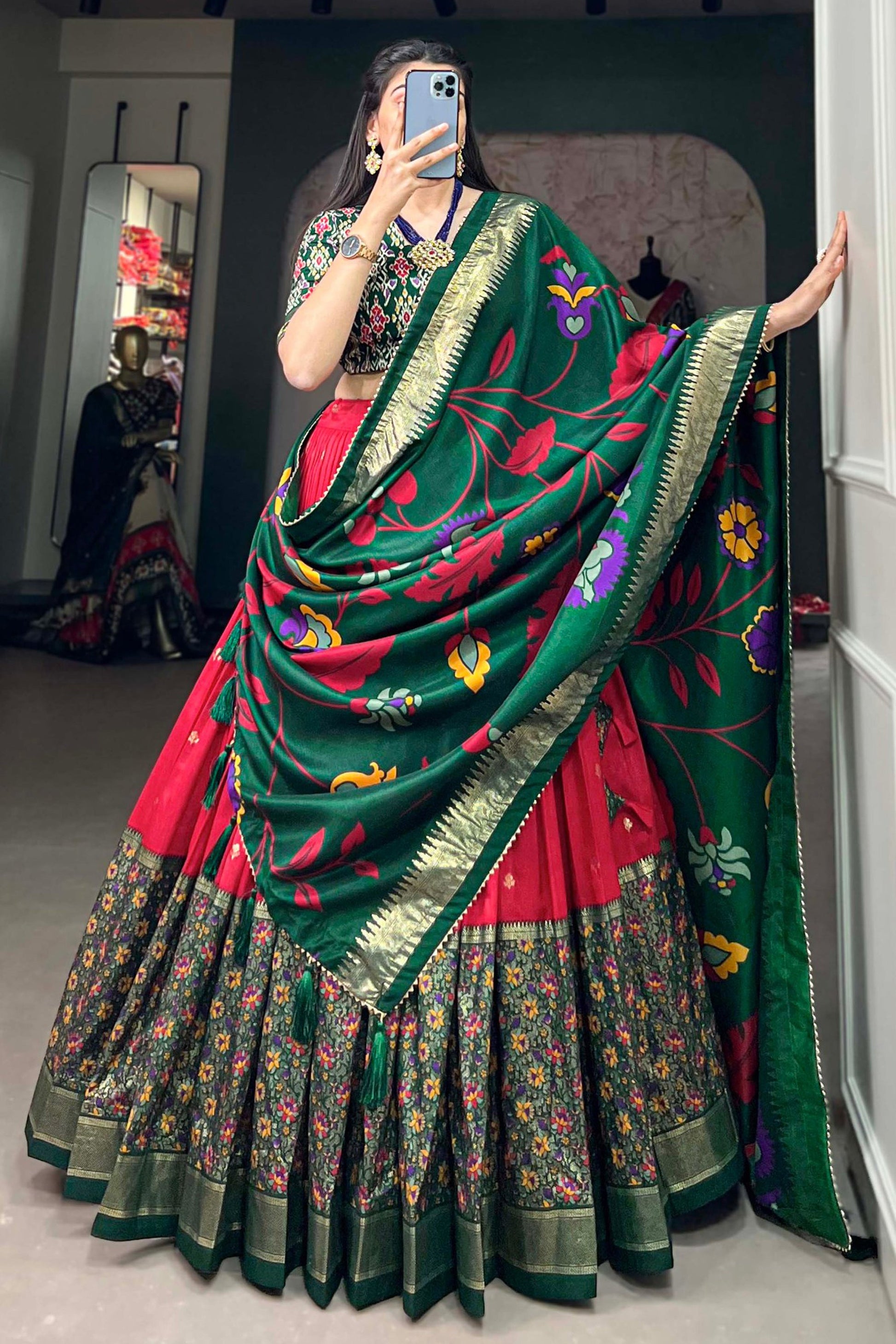 शानदार आर्ट सिल्क फैब्रिक लाल रंग का फॉयल प्रिंटेड लहंगा