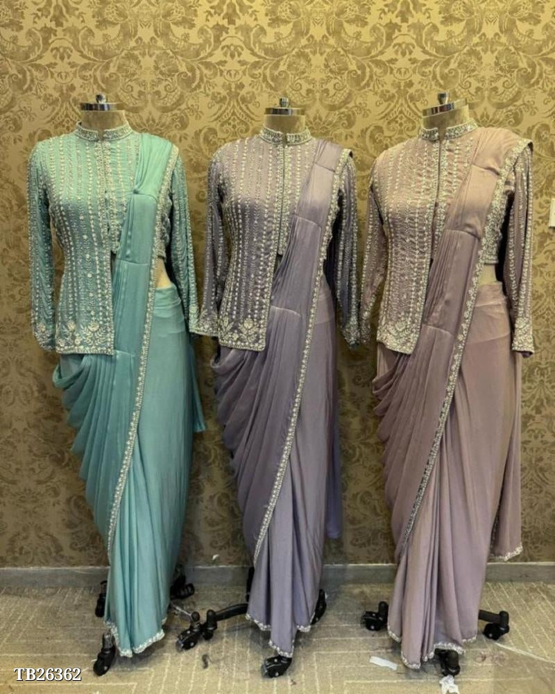 फैंसी कोटी डिजाइन अवधारणा के साथ फैंसी साड़ी (पूर्ण सिलाई)
