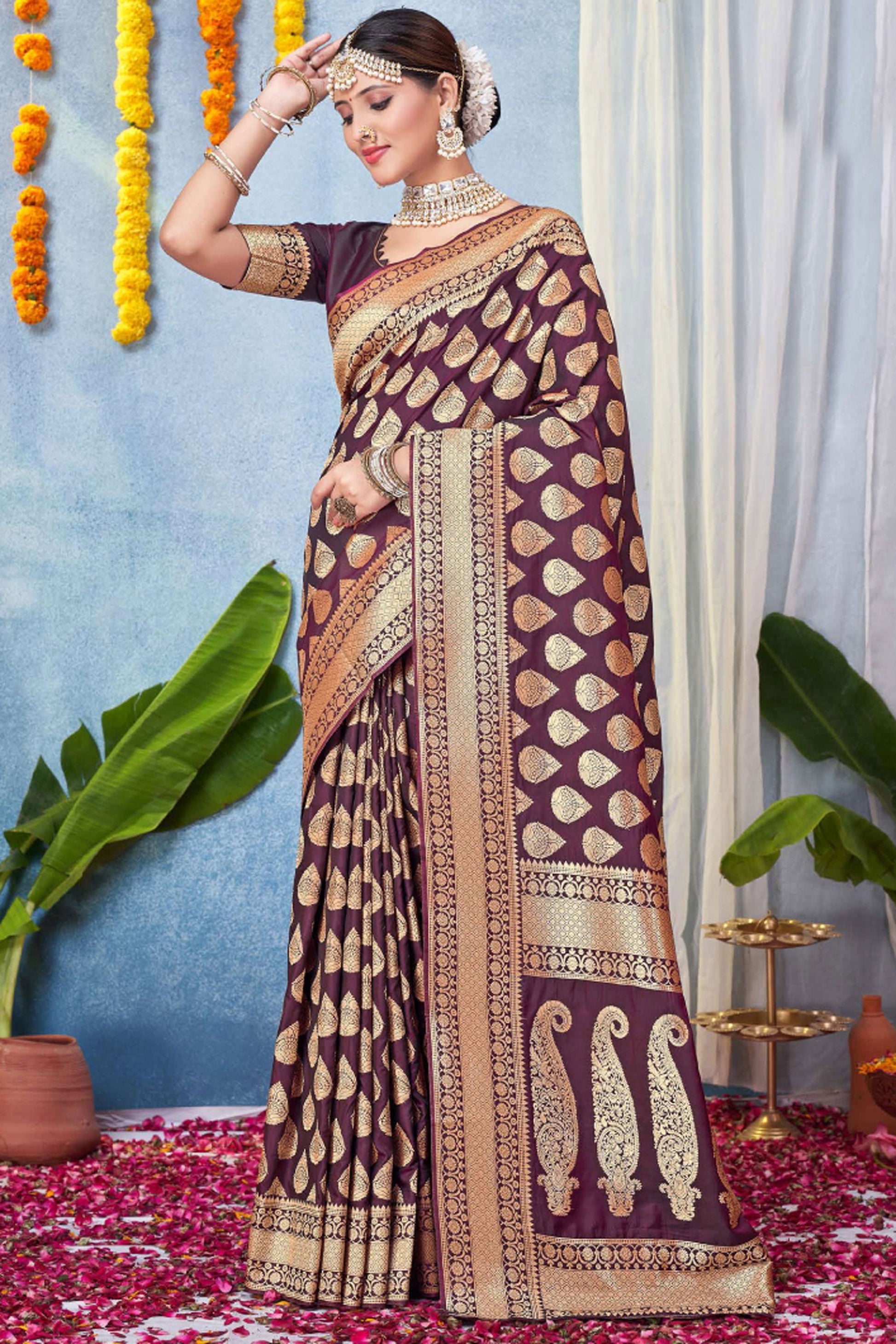 भूरे रंग में फंक्शन वियर आकर्षक आर्ट सिल्क फैब्रिक साड़ी
