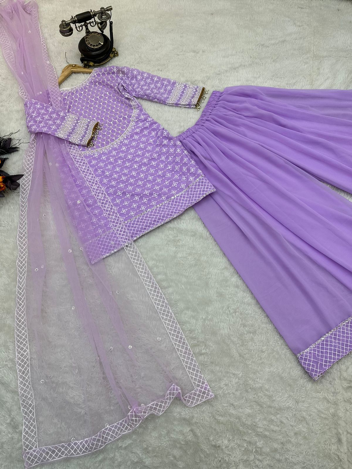 फंक्शन वियर लैवेंडर कलर का शरारा सूट