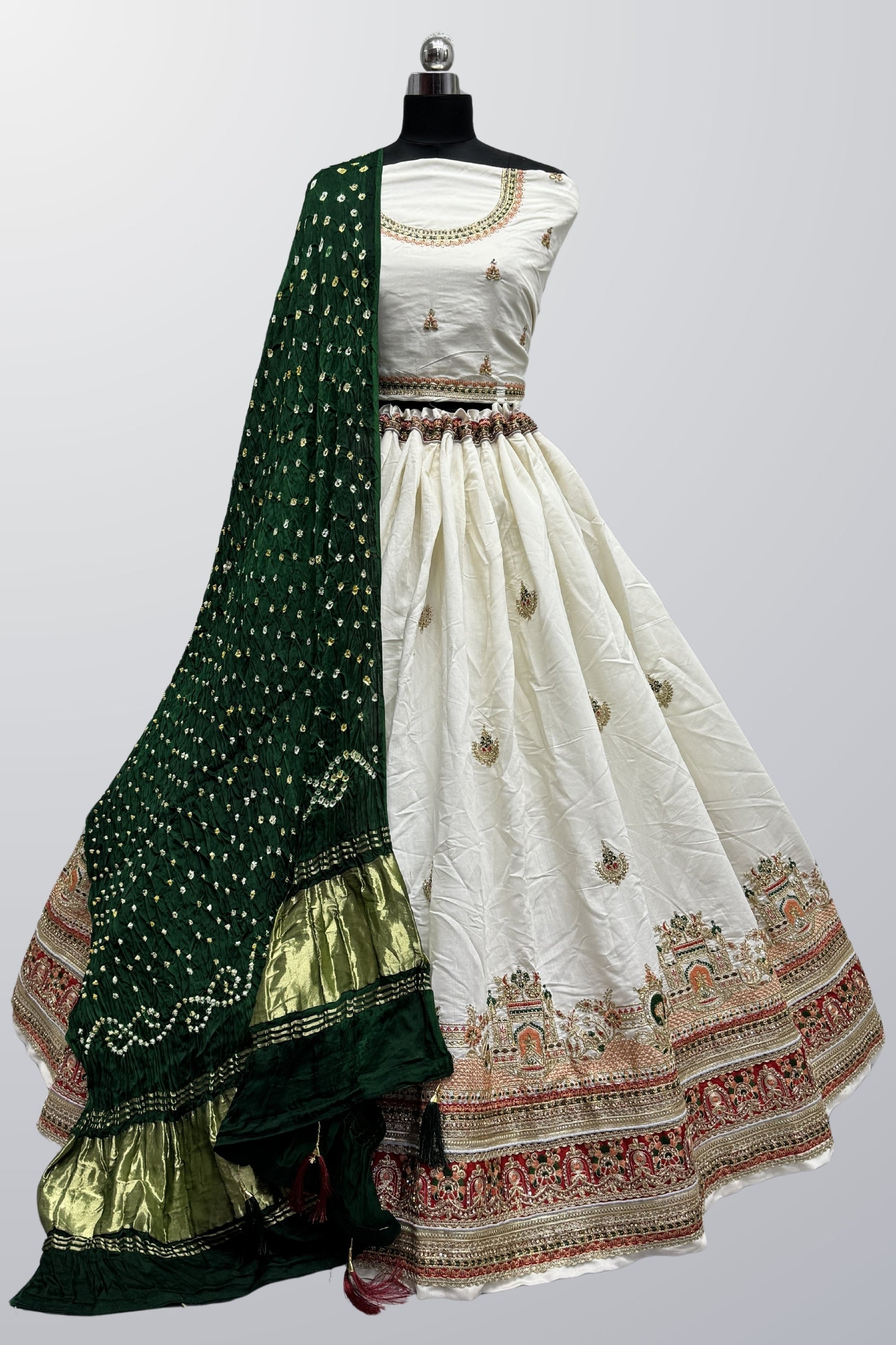 फंक्शन वियर सफ़ेद रंग आर्ट सिल्क फ़ैब्रिक लखनवी कढ़ाई वाला लहंगा