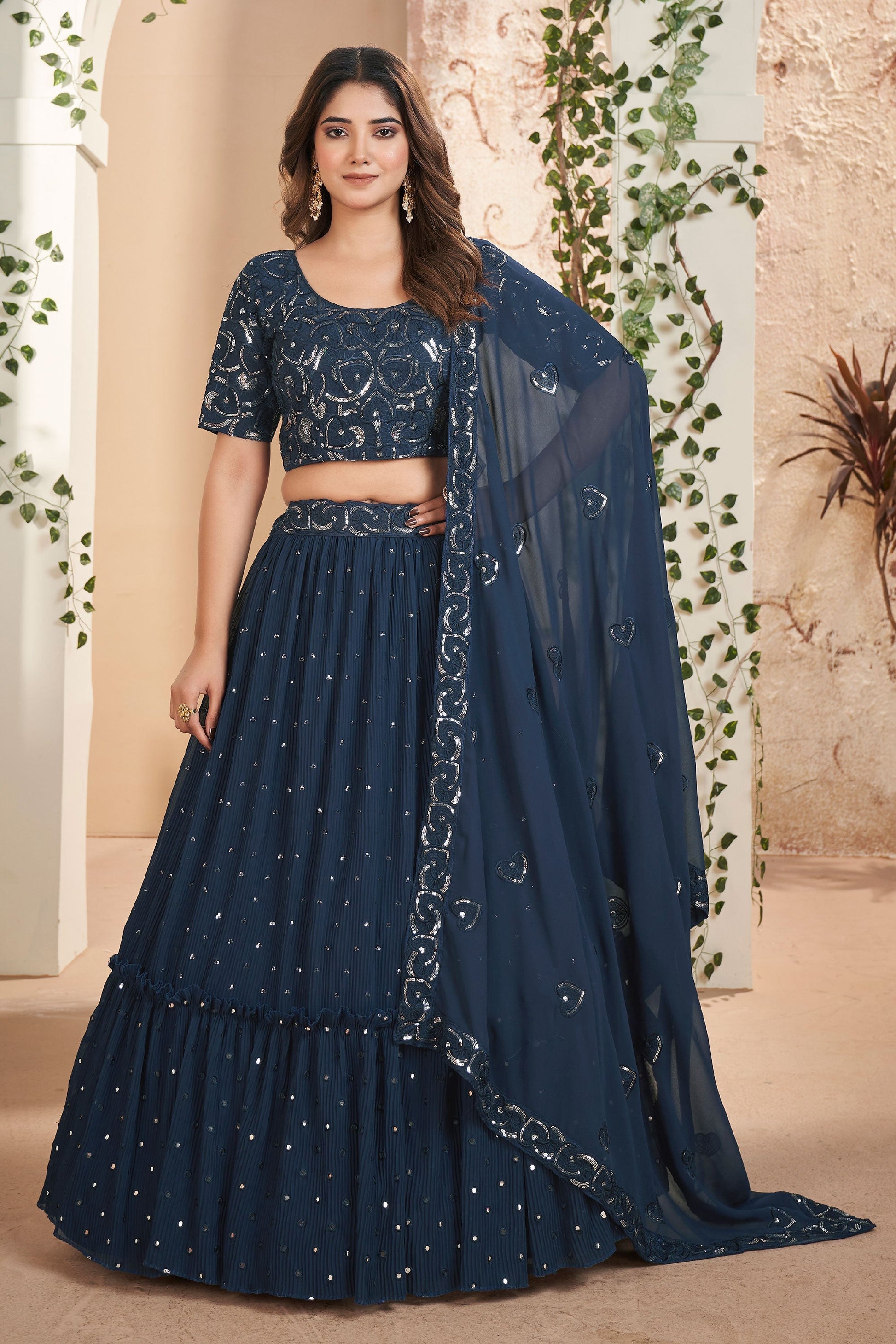 जॉर्जेट फैब्रिक फंक्शन वियर शानदार लहंगा नीले रंग में