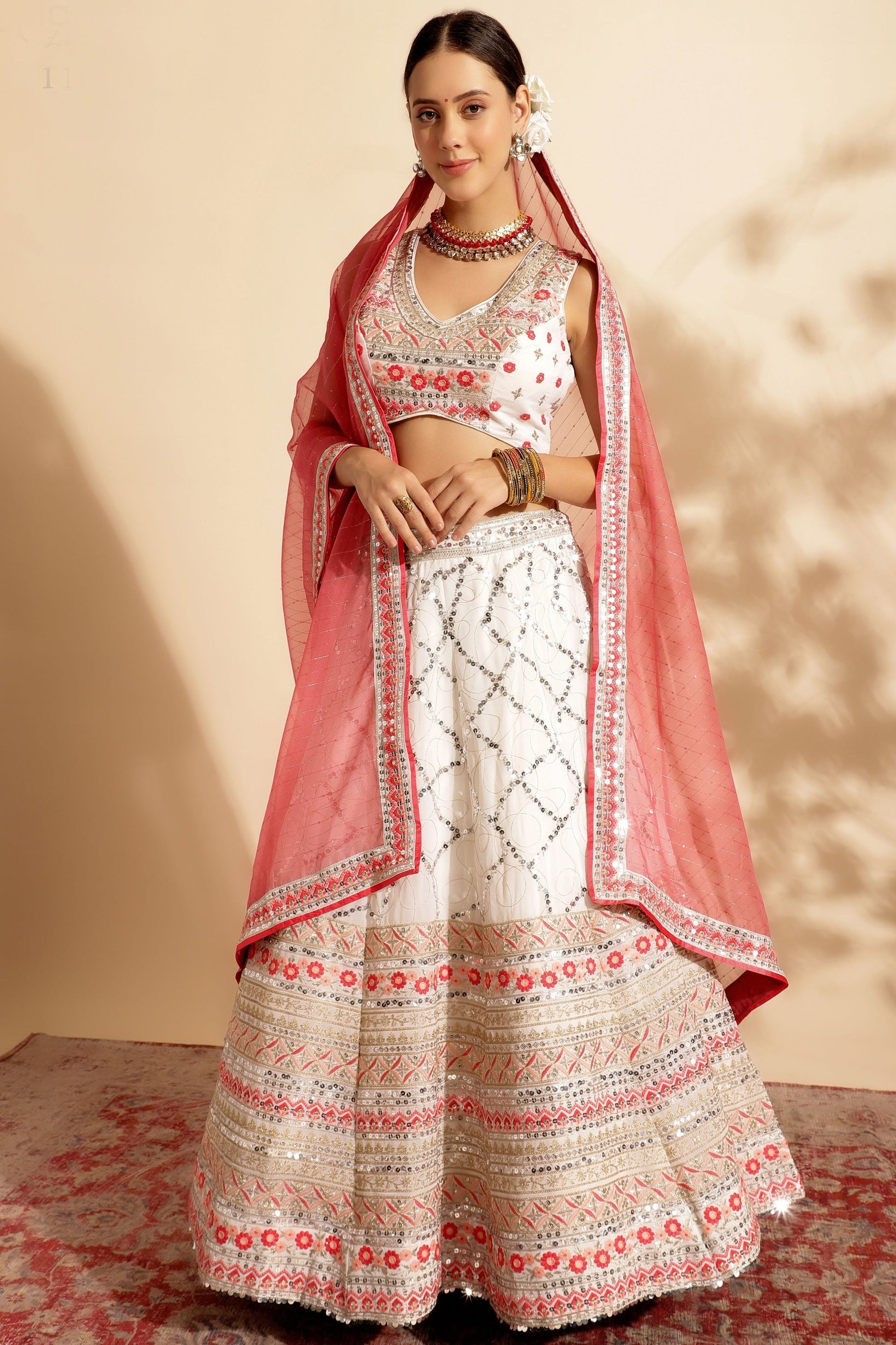 जॉर्जेट फैब्रिक ऑफ व्हाइट कलर का लहंगा विथ विनसम सेक्विन वर्क