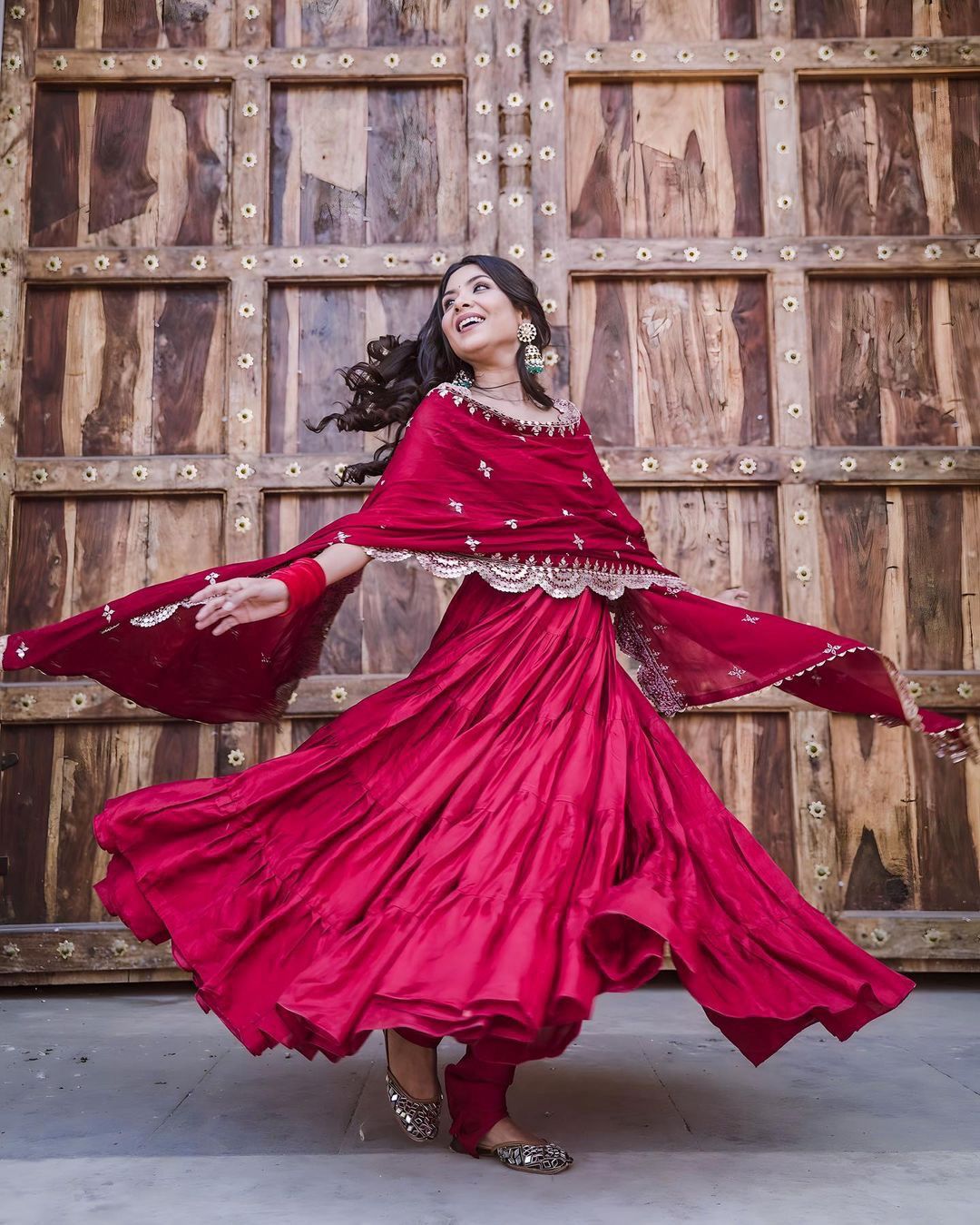 कढ़ाईदार दुपट्टे के साथ ग्लैमरस रफ़ल स्टाइल टॉप