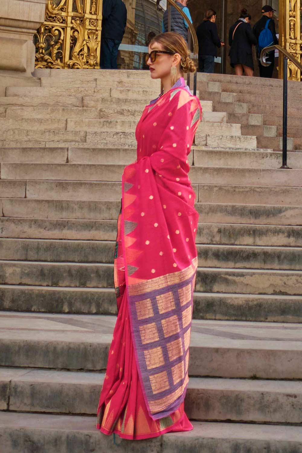 अंजुम सिल्क रानी ब्लॉक प्रिंट वन मिनट साड़ी