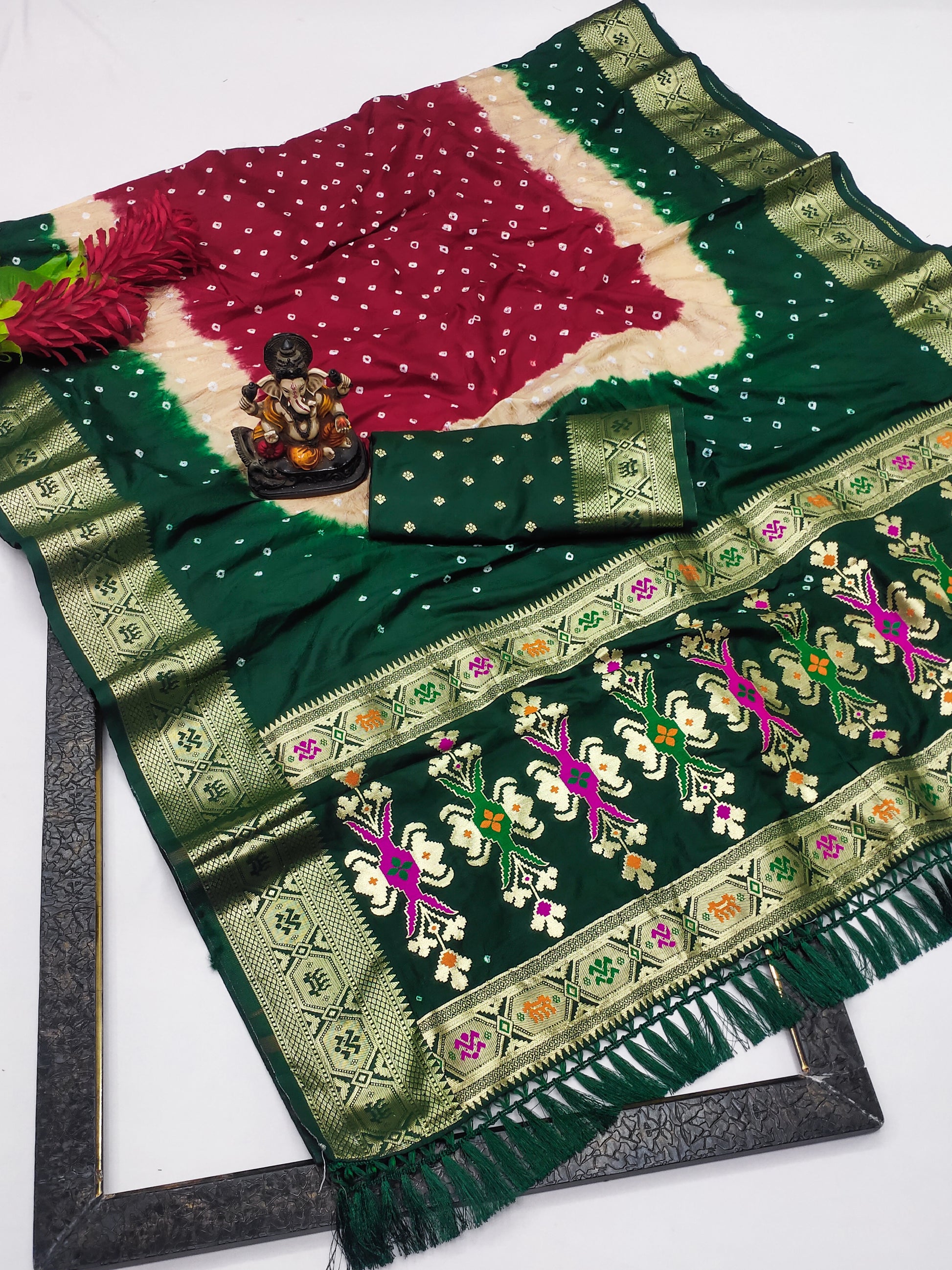 साड़ी का फ़ैब्रिक: मुलायम सिल्क बंधेज साड़ी भारी बंधेज हाथ के 3D रंग और सुंदर बुना हुआ बॉर्डर और पल्लू के साथ