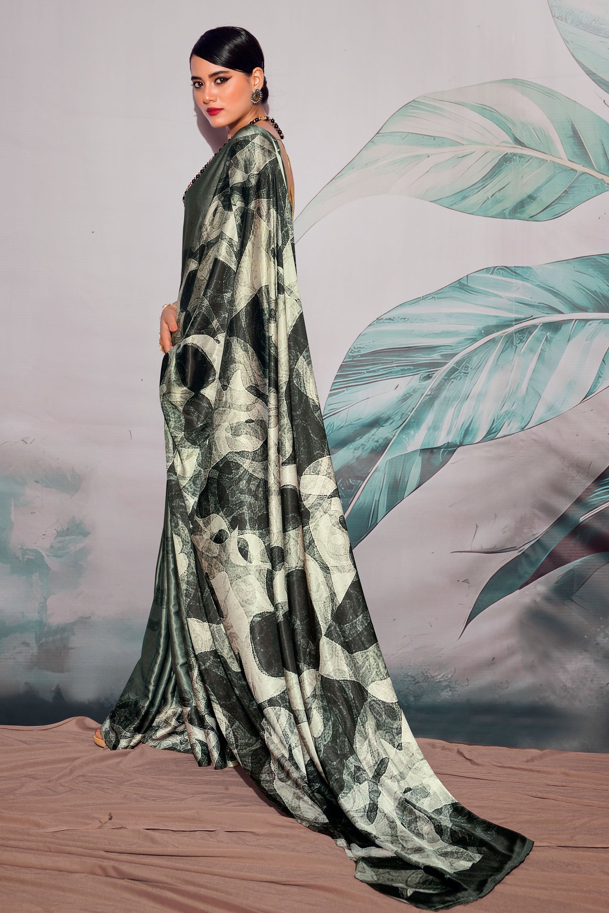 मल्टी कलर करिश्माई डिजिटल प्रिंटेड साटन फैब्रिक साड़ी