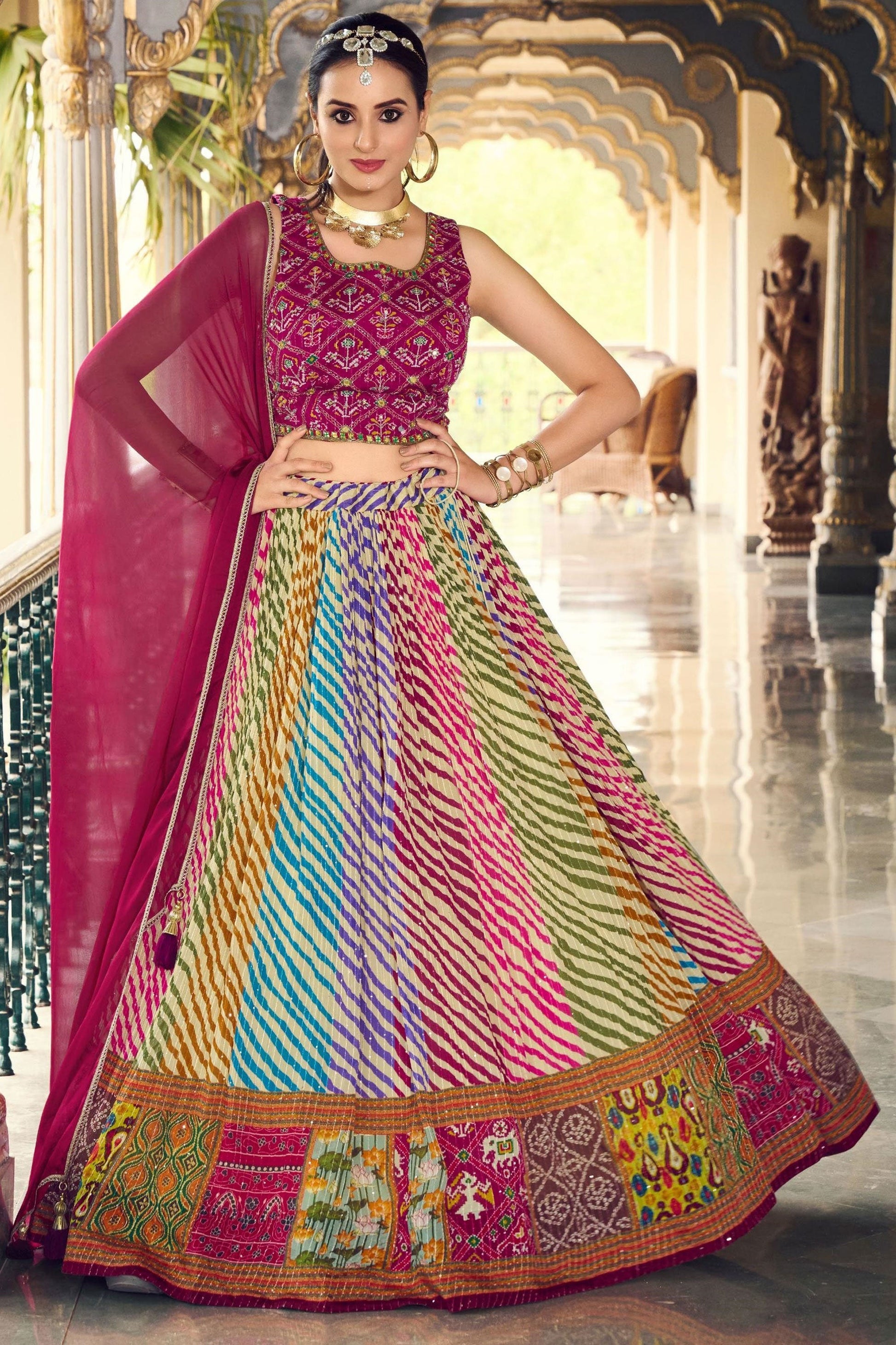 मल्टी कलर चिनॉन फैब्रिक प्रतिष्ठित रेडीमेड लहंगा