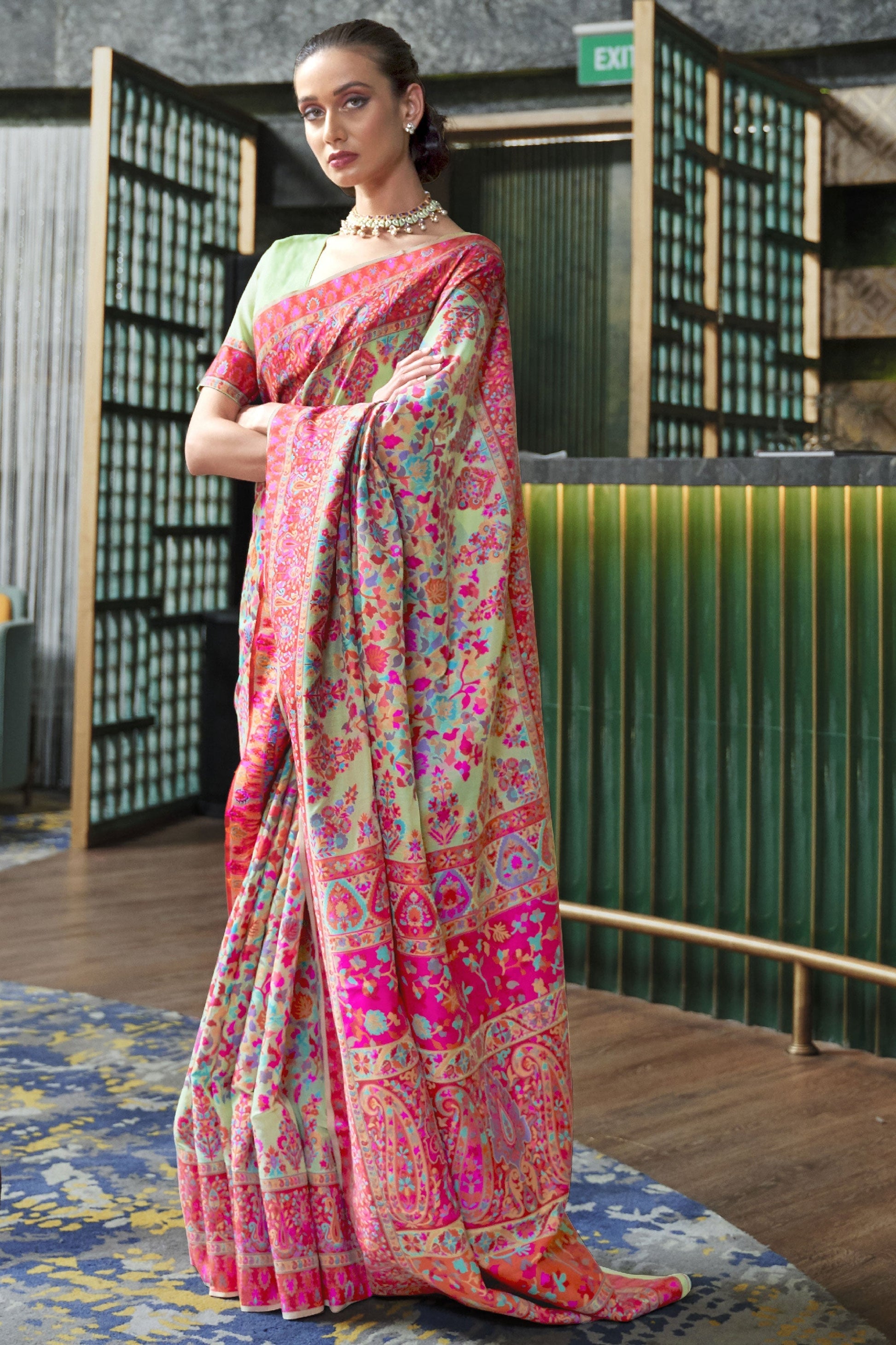 मल्टी कलर फंक्शन वियर डिज़ाइनर आर्ट सिल्क फ़ैब्रिक बुनाई वर्क साड़ी