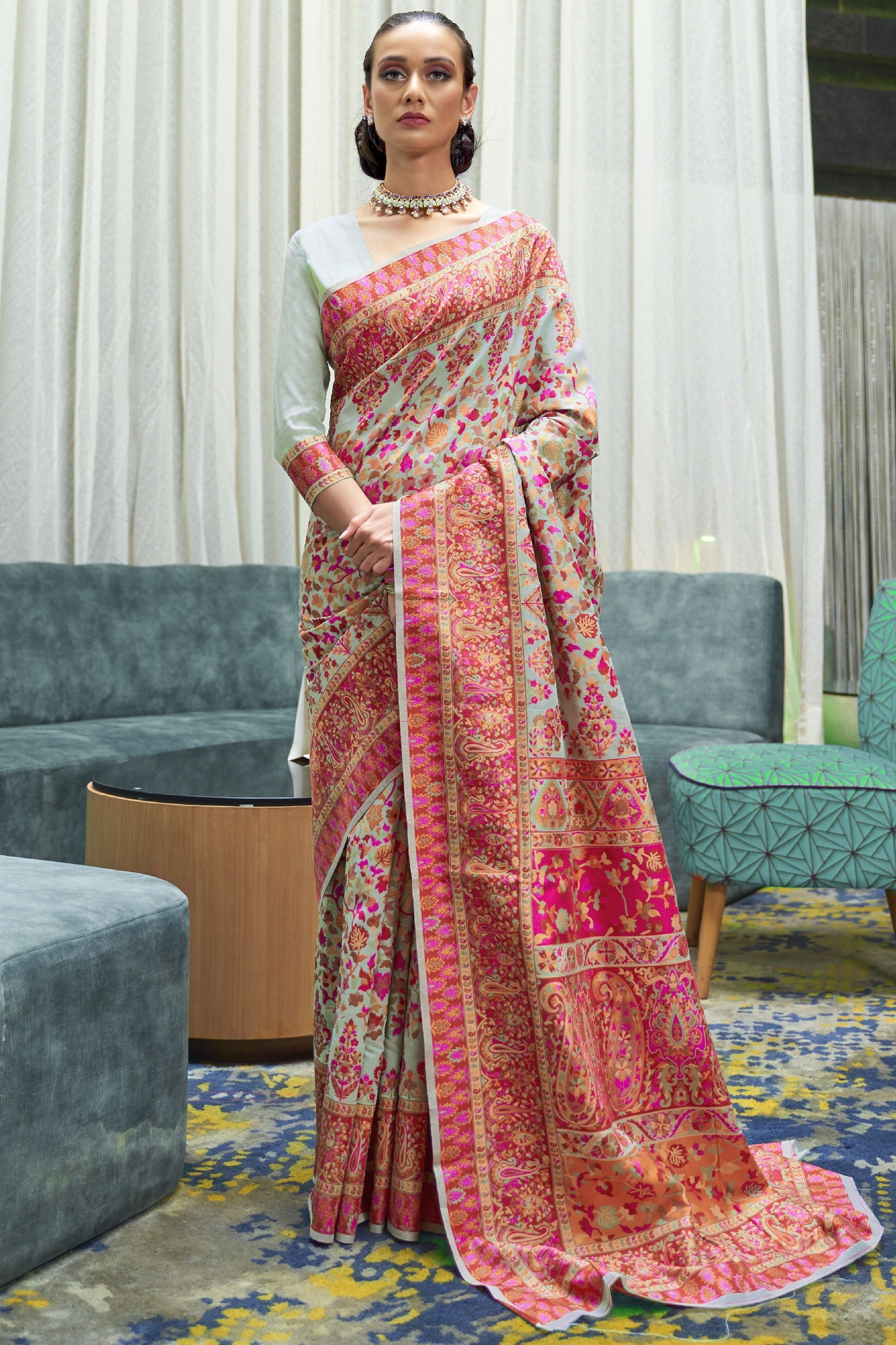 मल्टी कलर वीविंग वर्क आर्ट सिल्क फैब्रिक फंक्शन वियर साड़ी