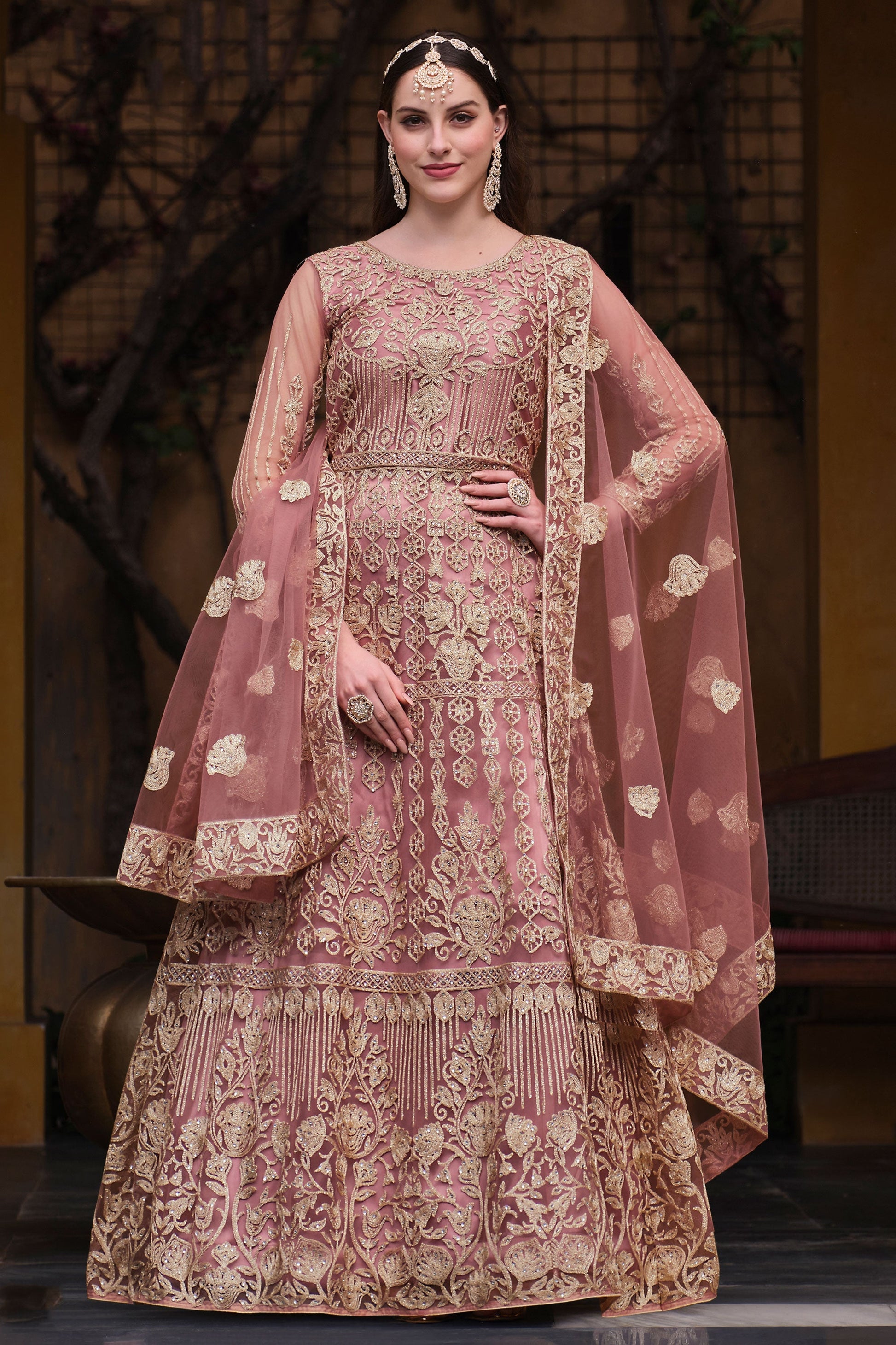 नेट फैब्रिक पिंक कलर सुप्रीम पार्टी स्टाइल अनारकली सूट