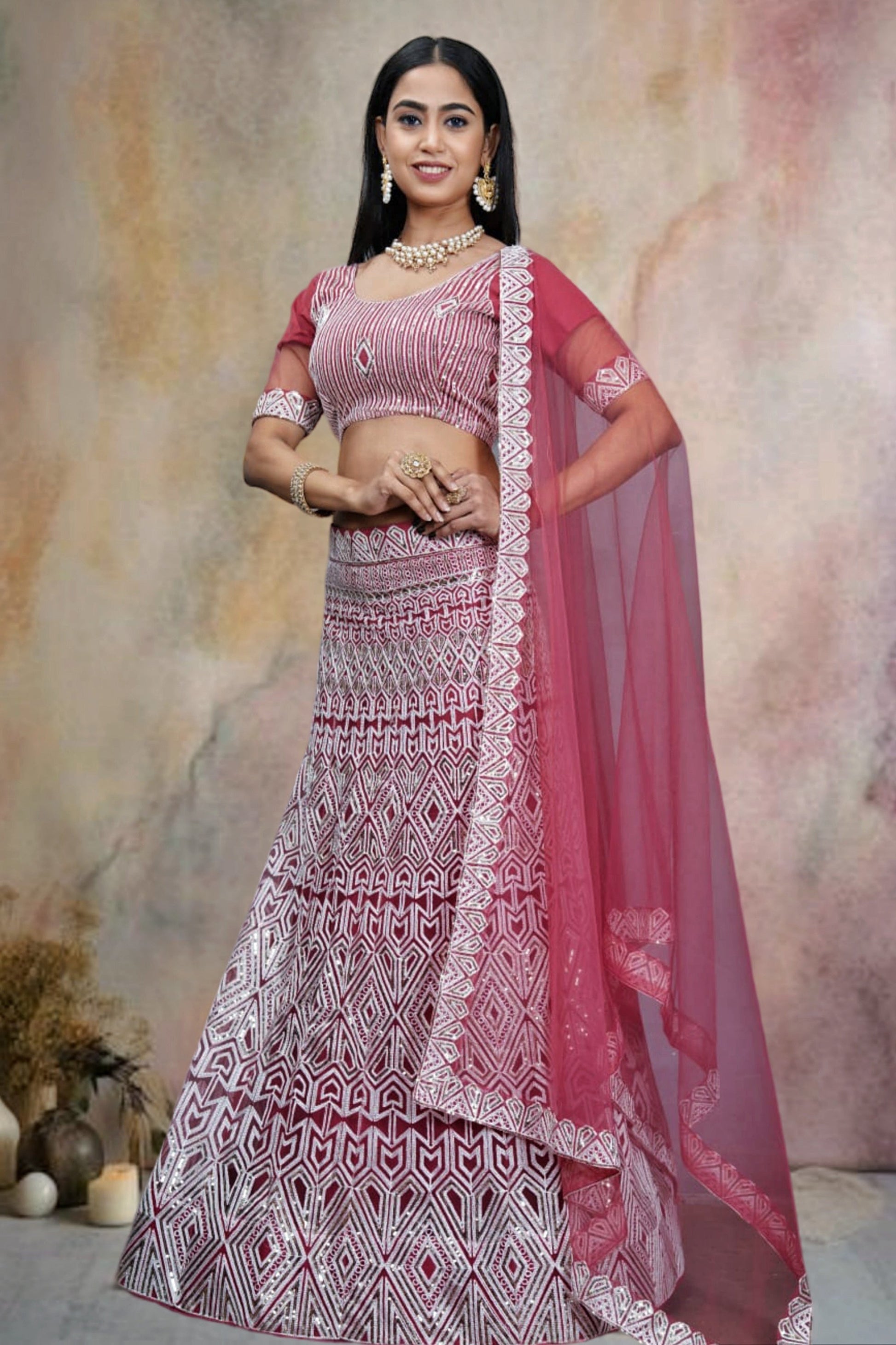 नेट फैब्रिक पिंक कलर सुप्रीम सेक्विन वर्क लहंगा