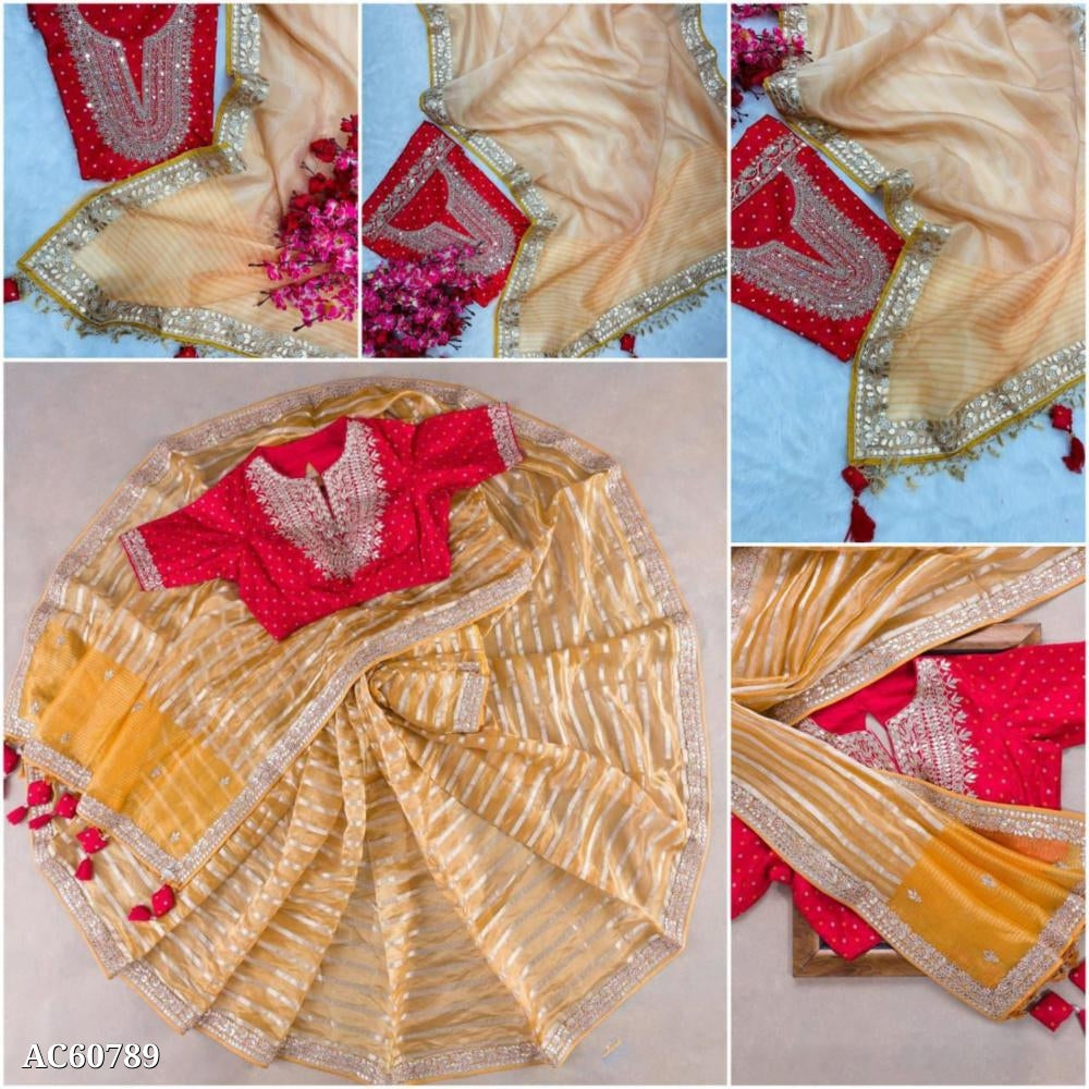 ऑर्गेना डिजिटल प्रिंट वर्क कढ़ाई गोटा पट्टी वर्क जालार के साथ