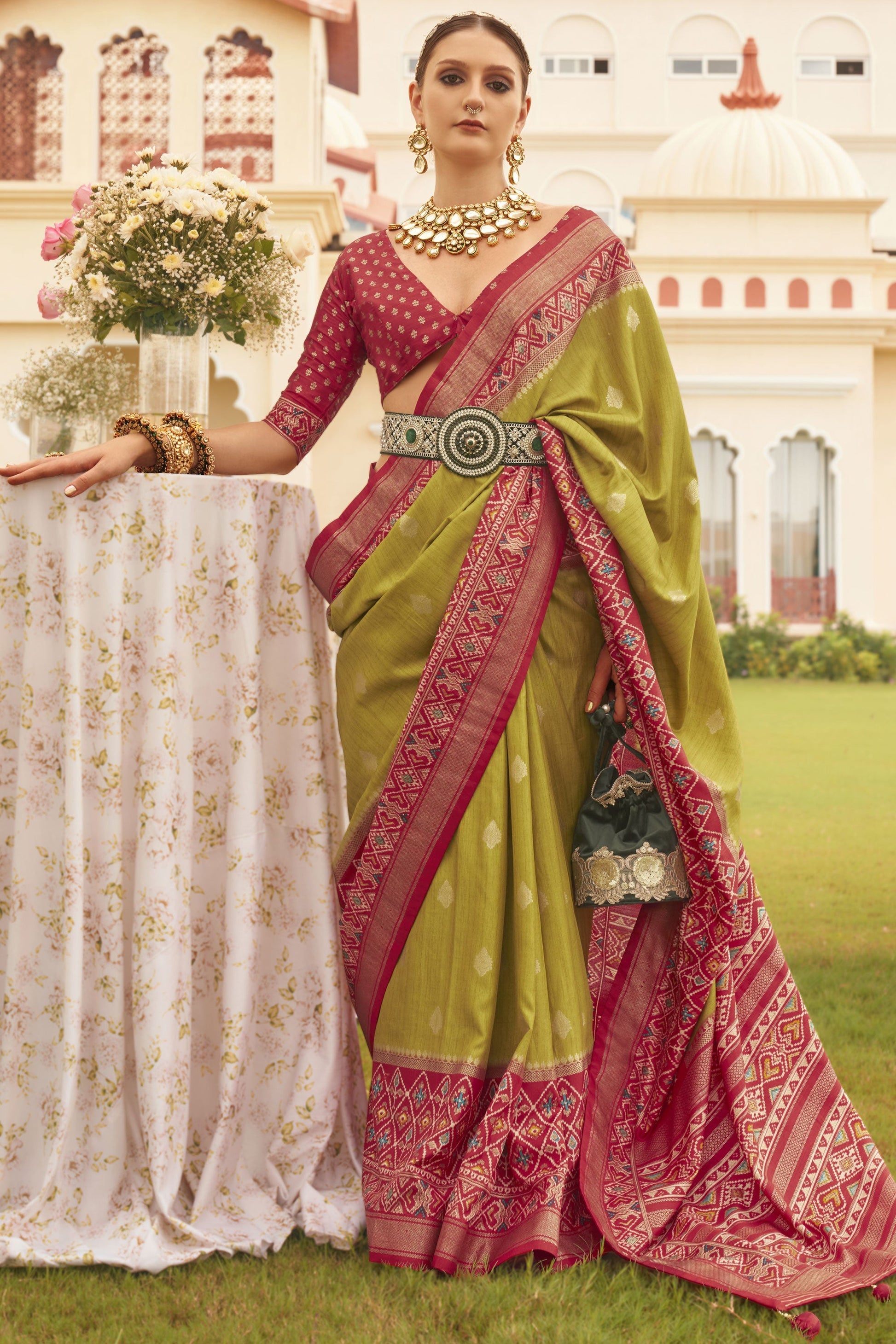 हरे रंग में पटोला सिल्क प्रिंटेड साड़ी