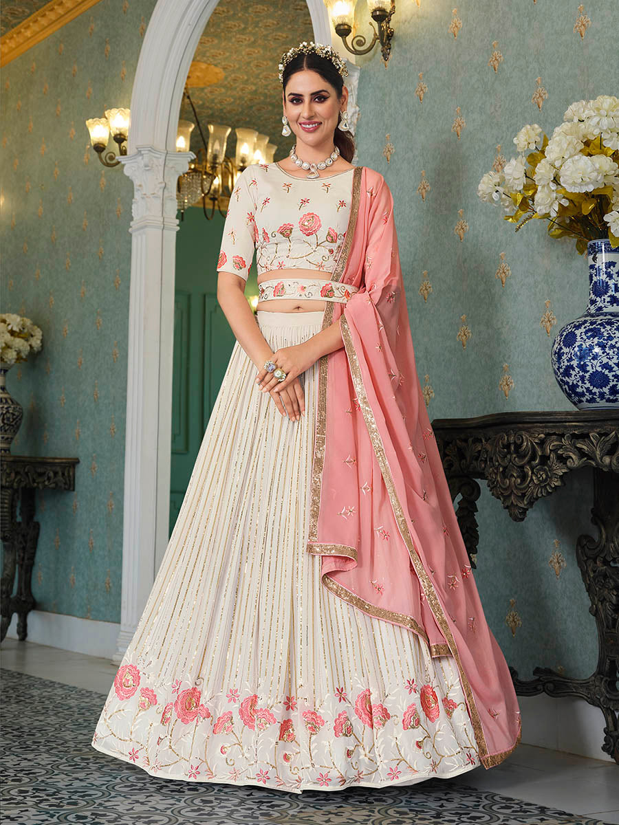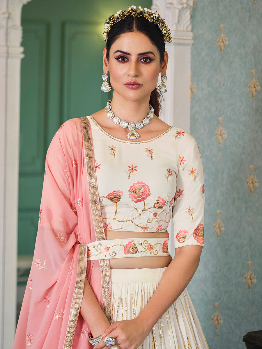 पर्ल व्हाइट जॉर्जेट कढ़ाई वाला डिजाइनर लहंगा