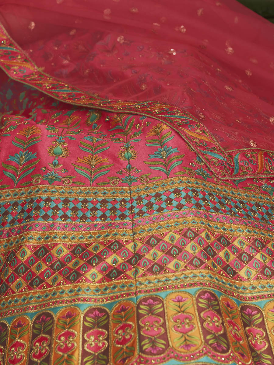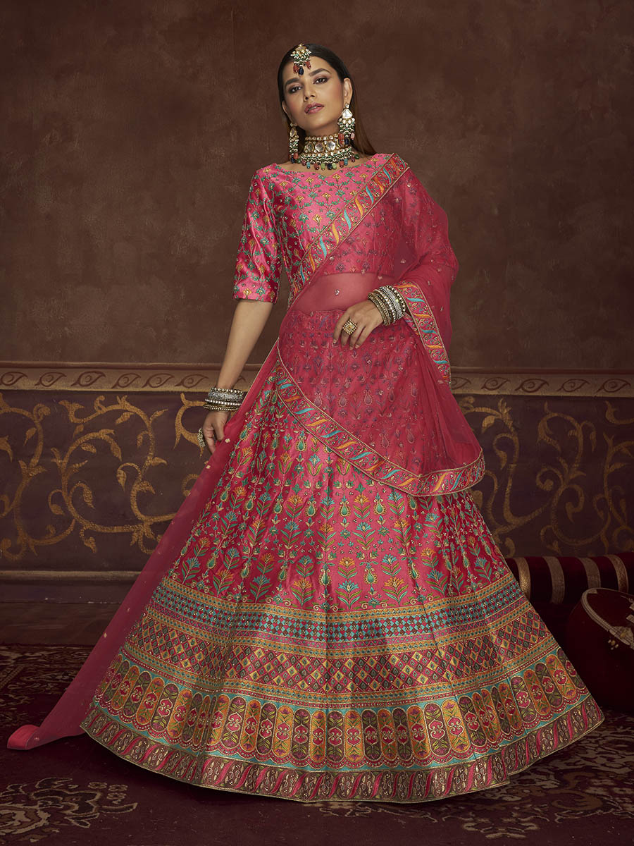 गुलाबी आर्ट सिल्क कढ़ाई डिजाइनर लेहेंगा