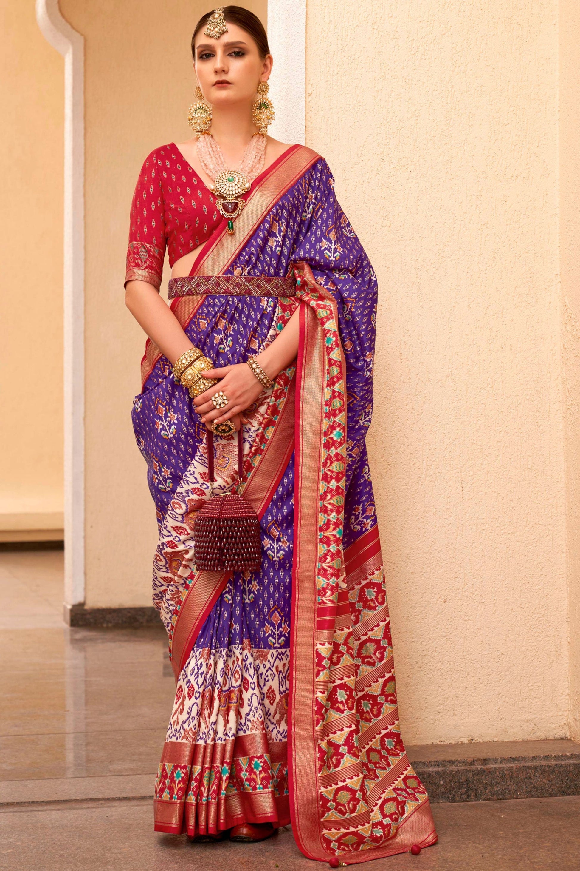 बैंगनी रंग मुद्रित समारोह पहनने पटोला सिल्क साड़ी