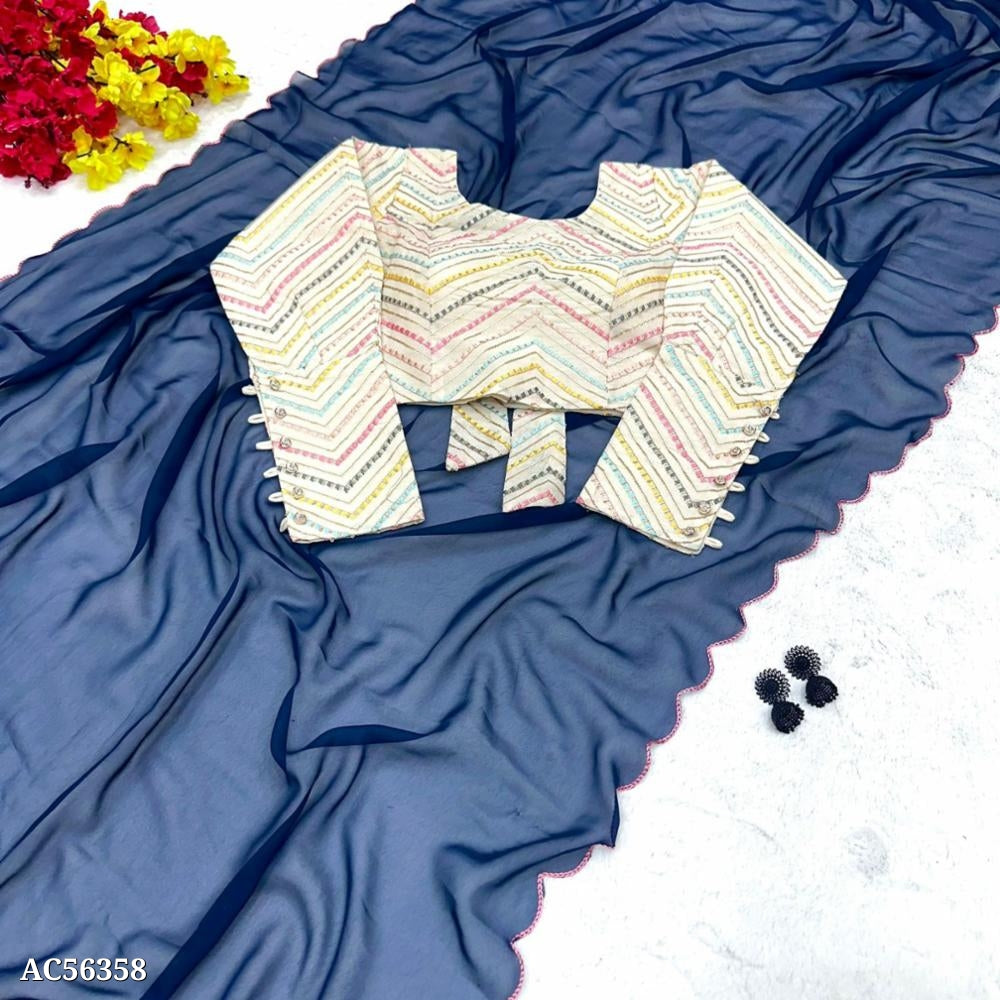 खूबसूरत आरी बॉर्डर और खादी कॉटन सिक्वेंस वर्क डिजाइनर ब्लाउज के साथ हमारे नए जॉर्जेट साड़ी संग्रह के साथ सुंदर रहें...