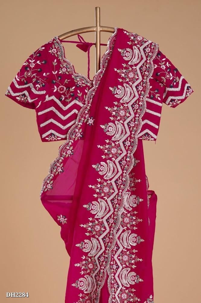 *ब्लाउज:* बैंगलोरी दो तरफ कढ़ाई का काम *(बिना सिला)*