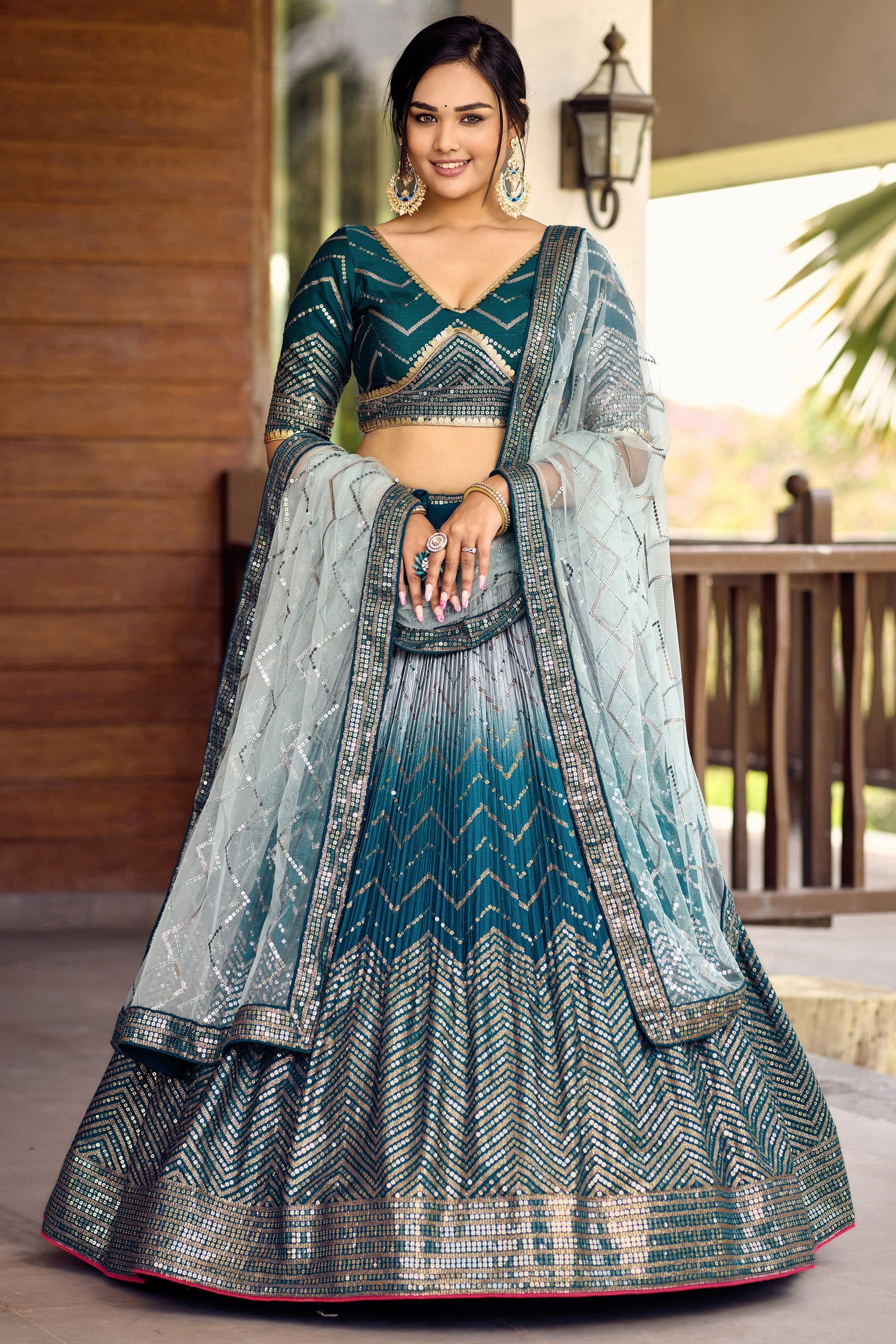 संगीत के लिए ट्रेंडी ब्लू चिनॉन फैब्रिक सेक्विन वर्क लहंगा