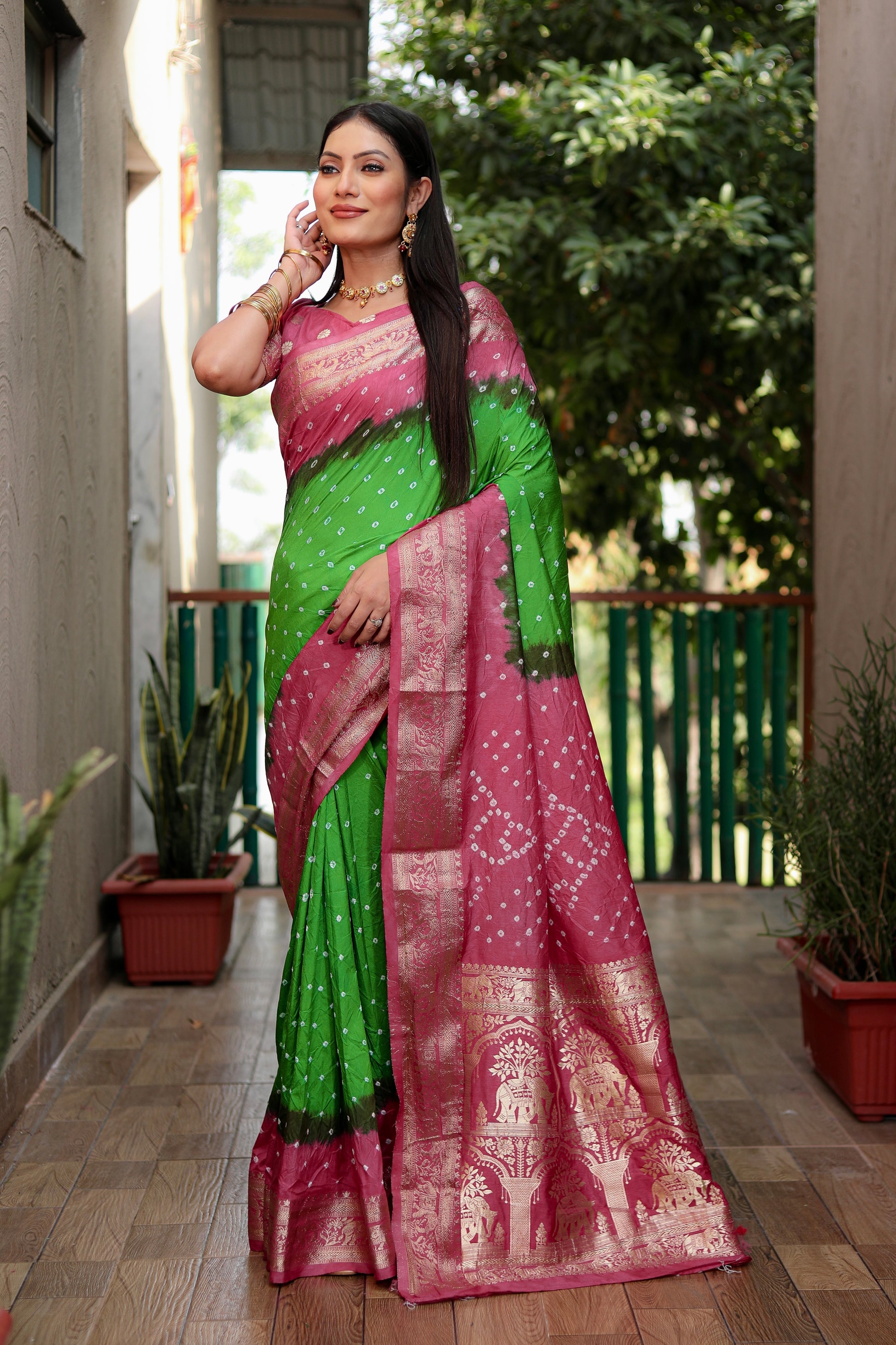 साड़ी का फ़ैब्रिक: बंधेज सिल्क साड़ी बंधेज बॉर्डर के साथ ज़री बॉर्डर रिच टिश्यू पल्लू के साथ