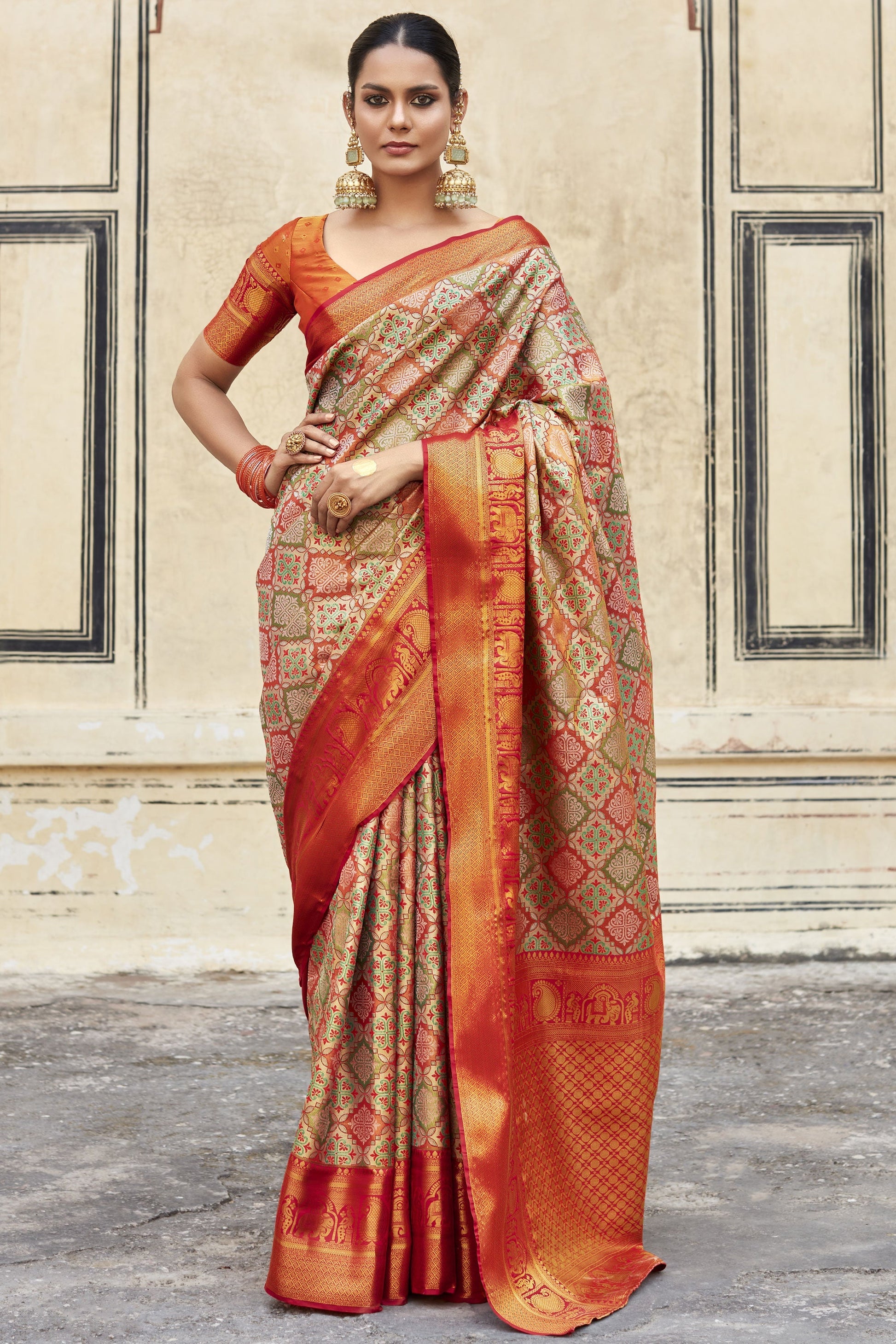 बुनाई का काम मल्टी कलर आर्ट सिल्क फैब्रिक फंक्शन वियर साड़ी