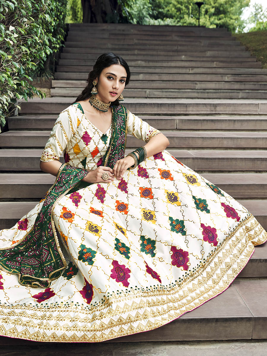सफ़ेद रेशम कढ़ाई डिजाइनर लेहेंगा चोली