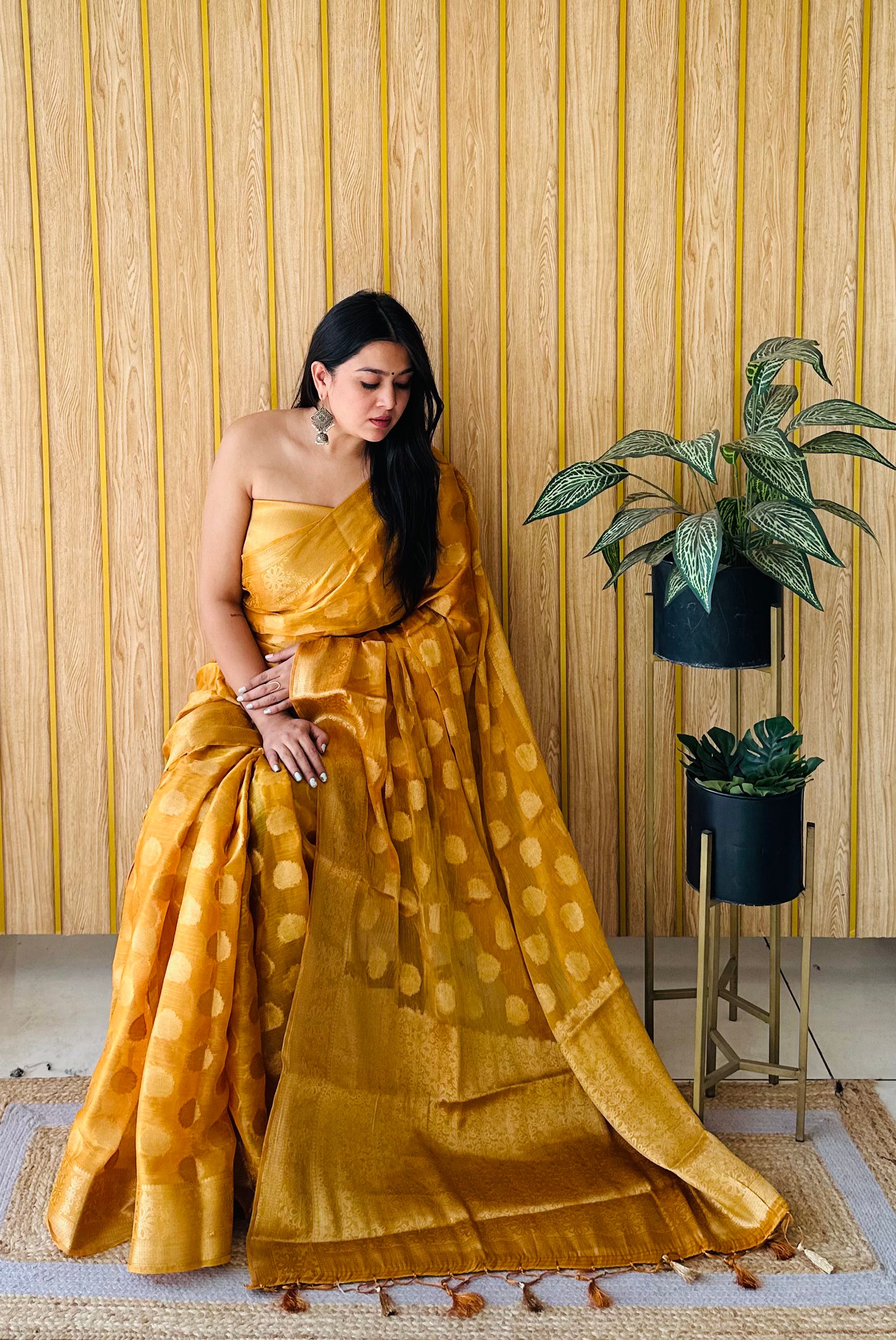 पीले रंग की पर्मियम सॉफ्ट गिमिचू सिल्क साड़ी और जरी बुनाई बॉर्डर