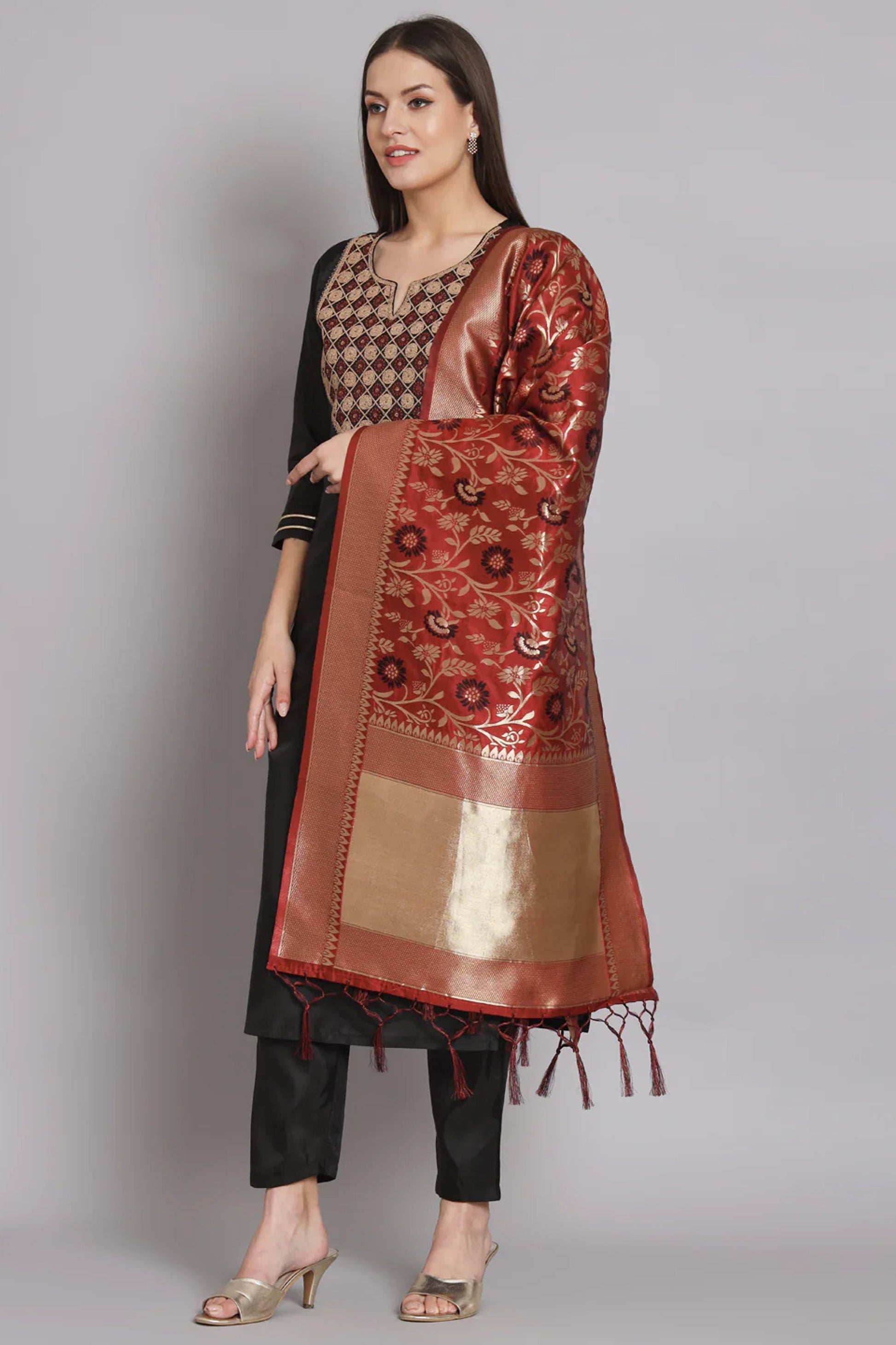 Text blockArt Silk Fabric Black Color Embroidered Readymade Designer Salwar Kameez With Banarasi Silk Dupatta