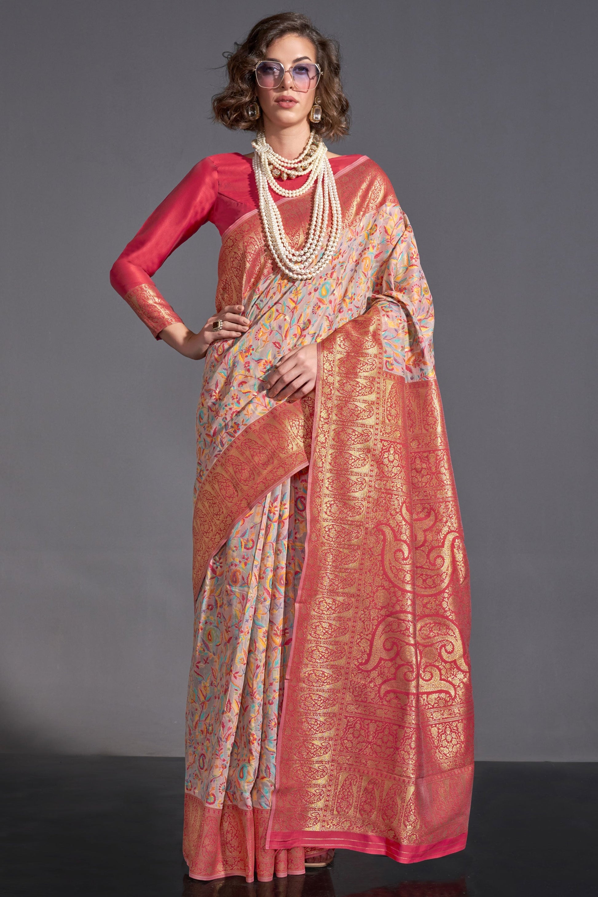 Art Silk Fabric Peach Color Beatific Look Weaving Designs Saree