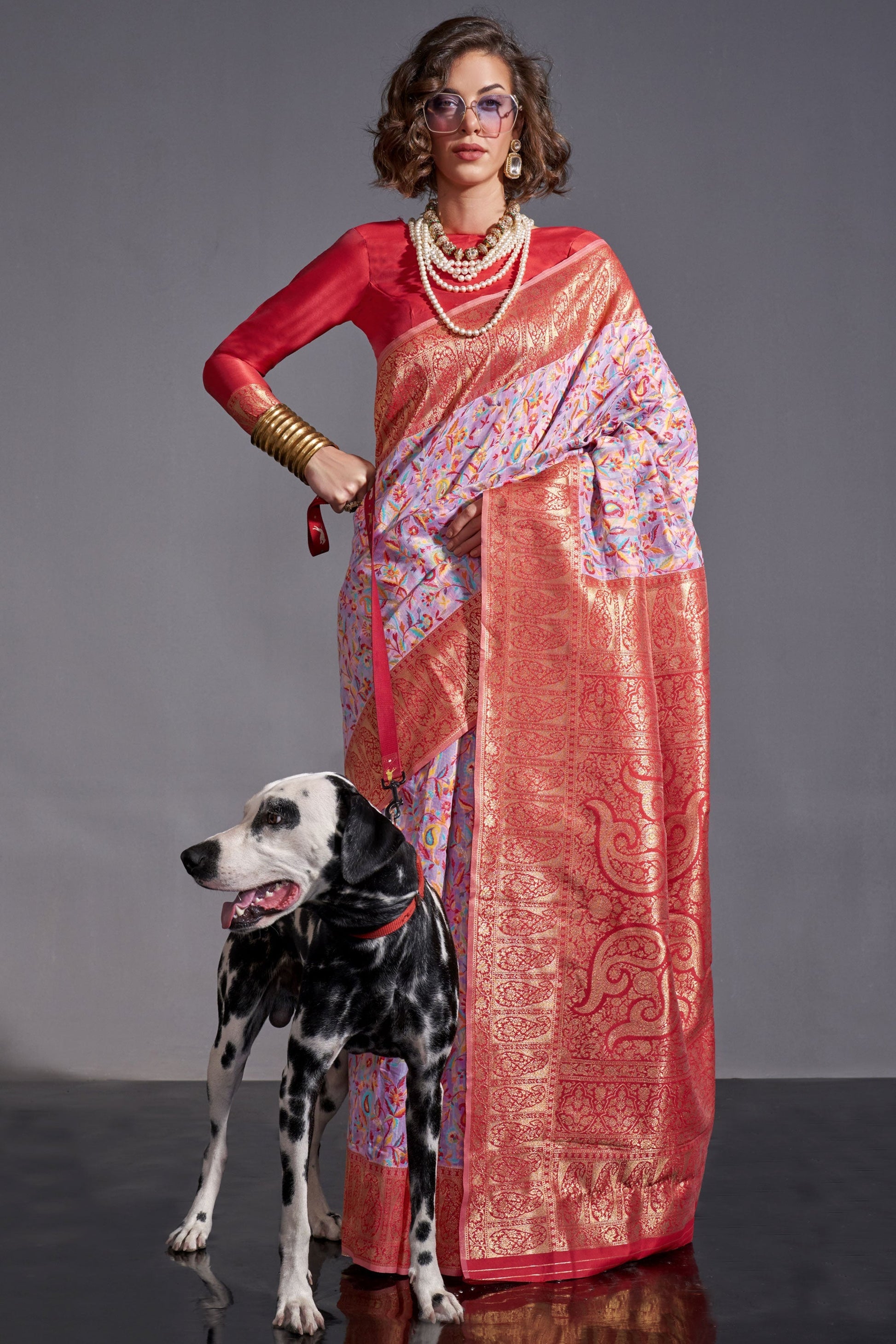 Art Silk Fabric Pink Color Gorgeous Look Weaving Designs Saree