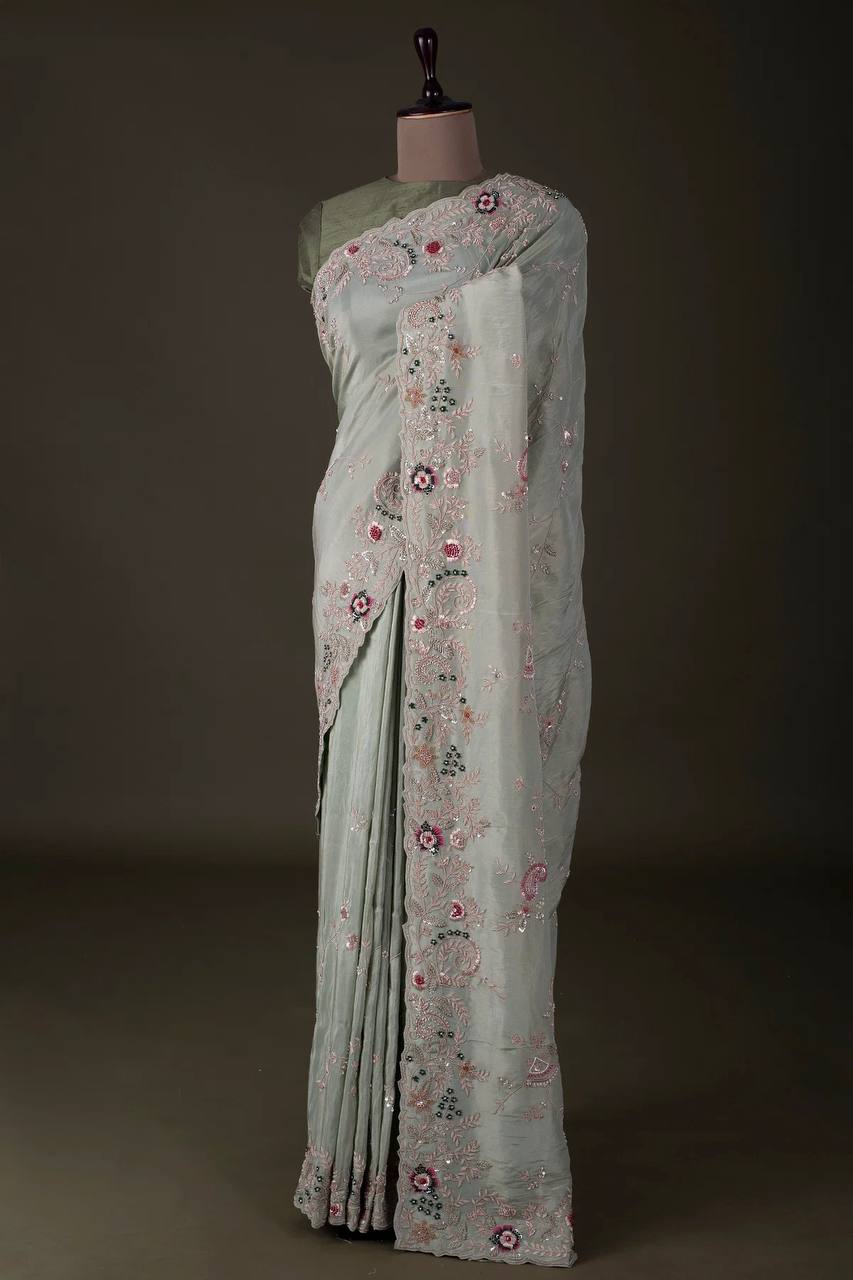 Beautiful Function Wear Chinon Silk with Heavy Embroidery Work Saree